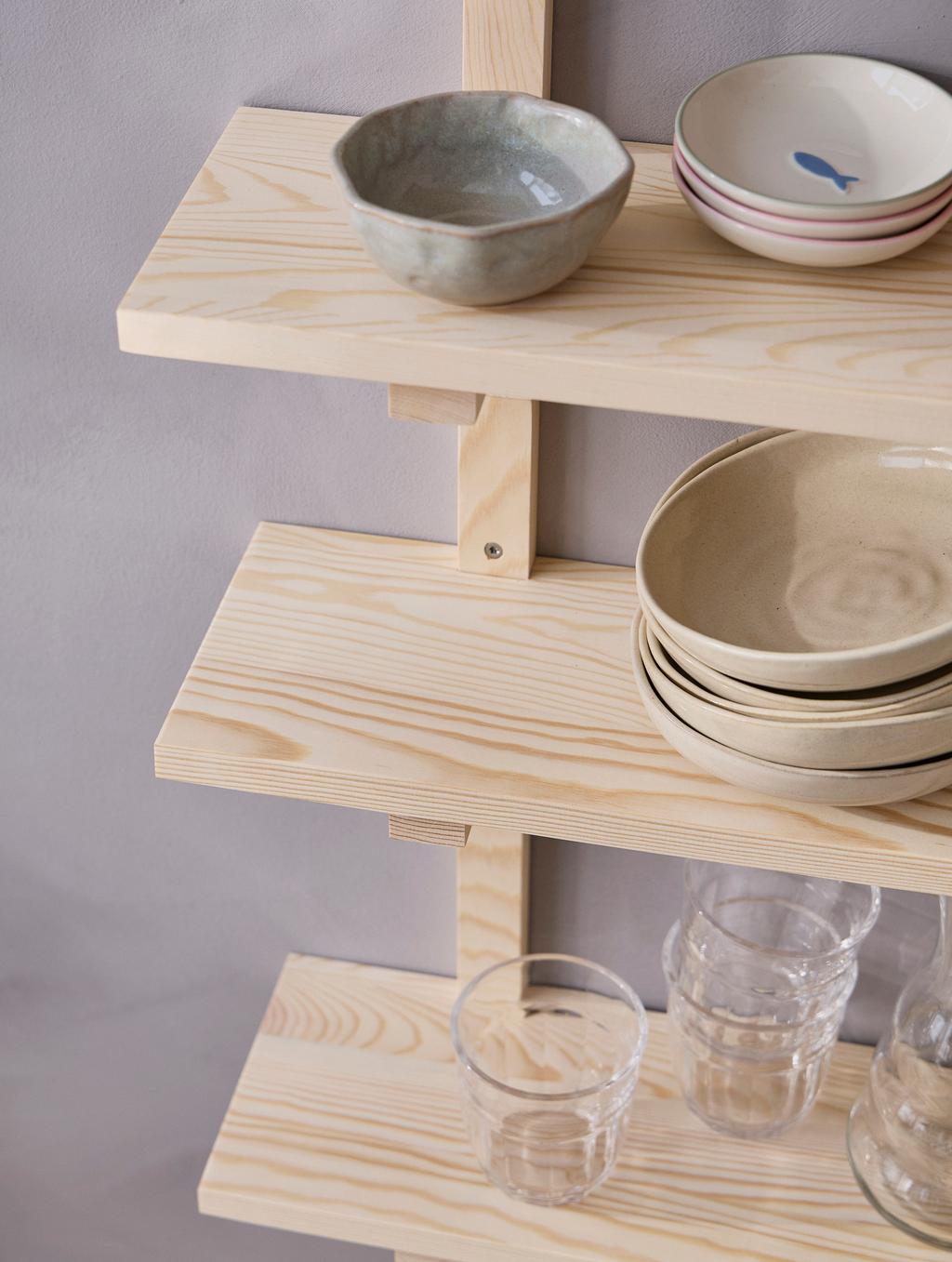 Allt í röð og reglu á hillum sem sameina fagurfræði og notagildi.