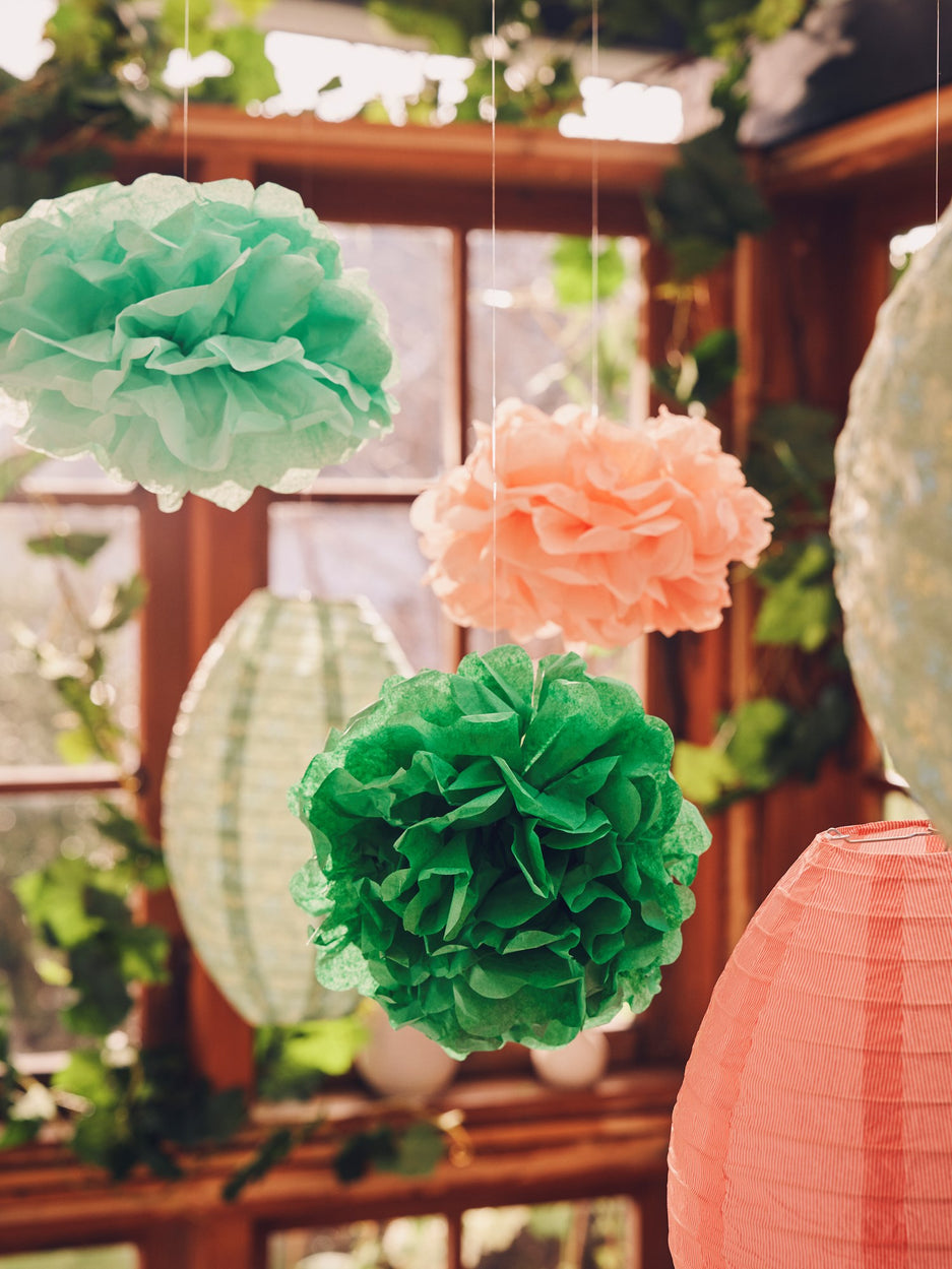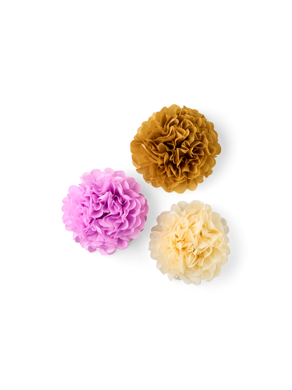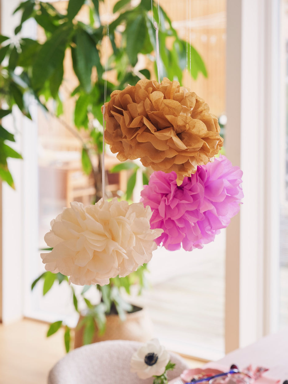 "These charming flower pom poms bring a touch of whimsy to any celebration," Anna says, arranging them with care. "They add a delightful splash of colour to your décor," Clara adds, admiring the cheerful display.