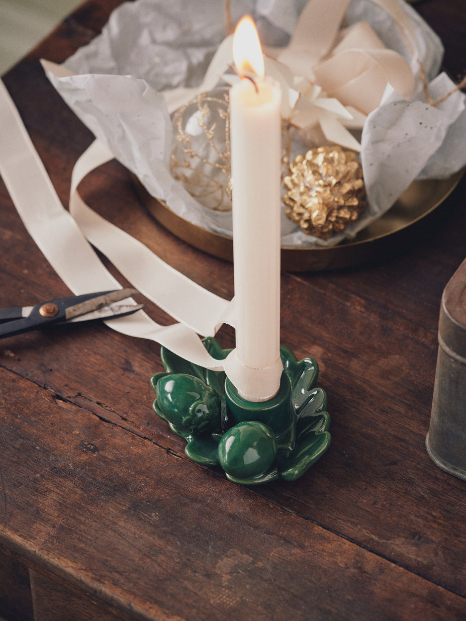 Anna gently places a candle in the holder, admiring its decorative charm. "This piece brings a touch of nature indoors," she says. Clara adds, "It creates a cosy atmosphere, perfect for quiet evenings at home."