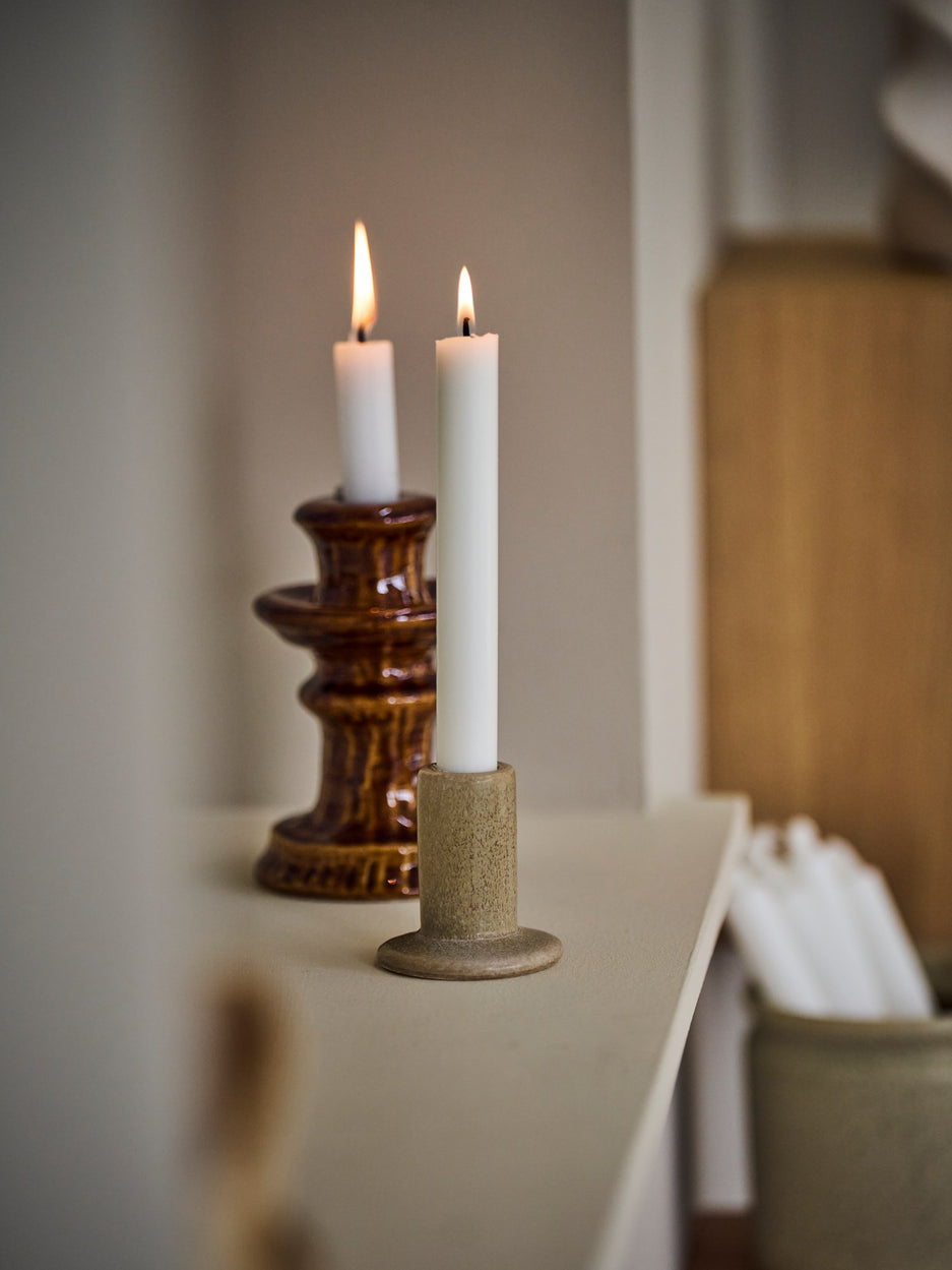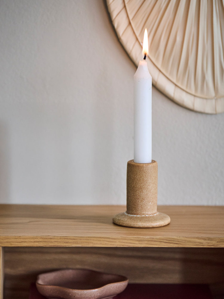 Anna gently places a candle in the holder, saying, "A candle's glow brings warmth to any room." Clara adds, "This holder's simple design ensures it complements any decor, creating a cosy atmosphere."