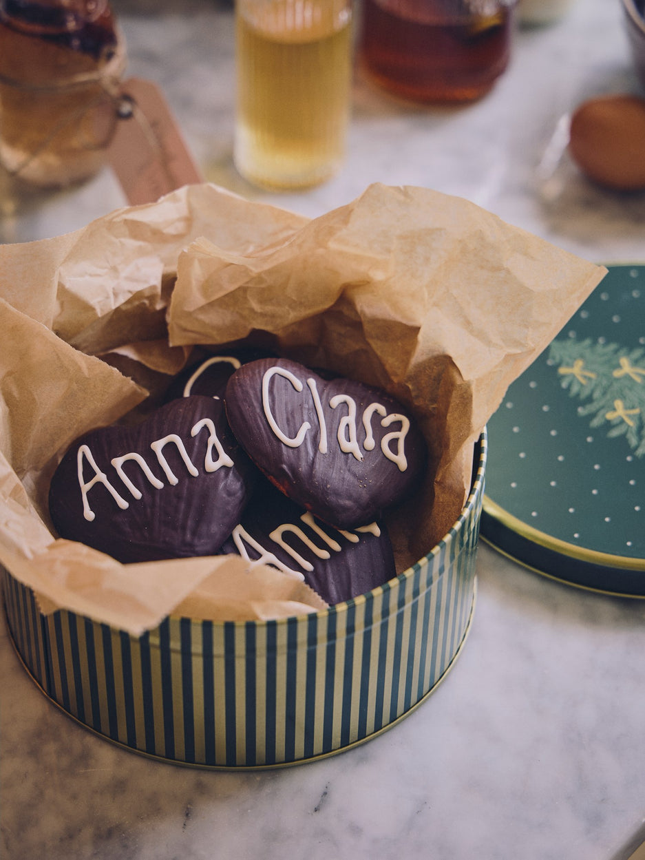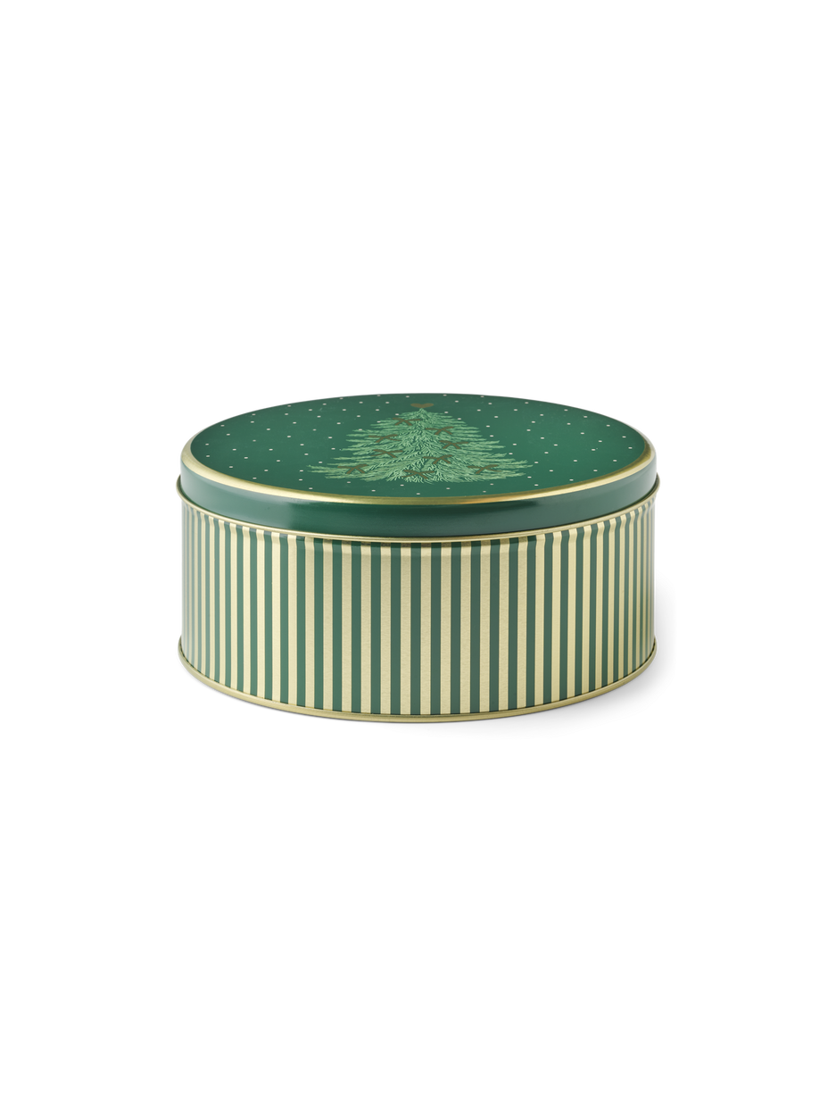 "Biscuits deserve a charming home," Clara says, admiring the decorative tin. Anna nods, adding, "It brings a festive touch to the kitchen, perfect for storing treats during the holiday season."