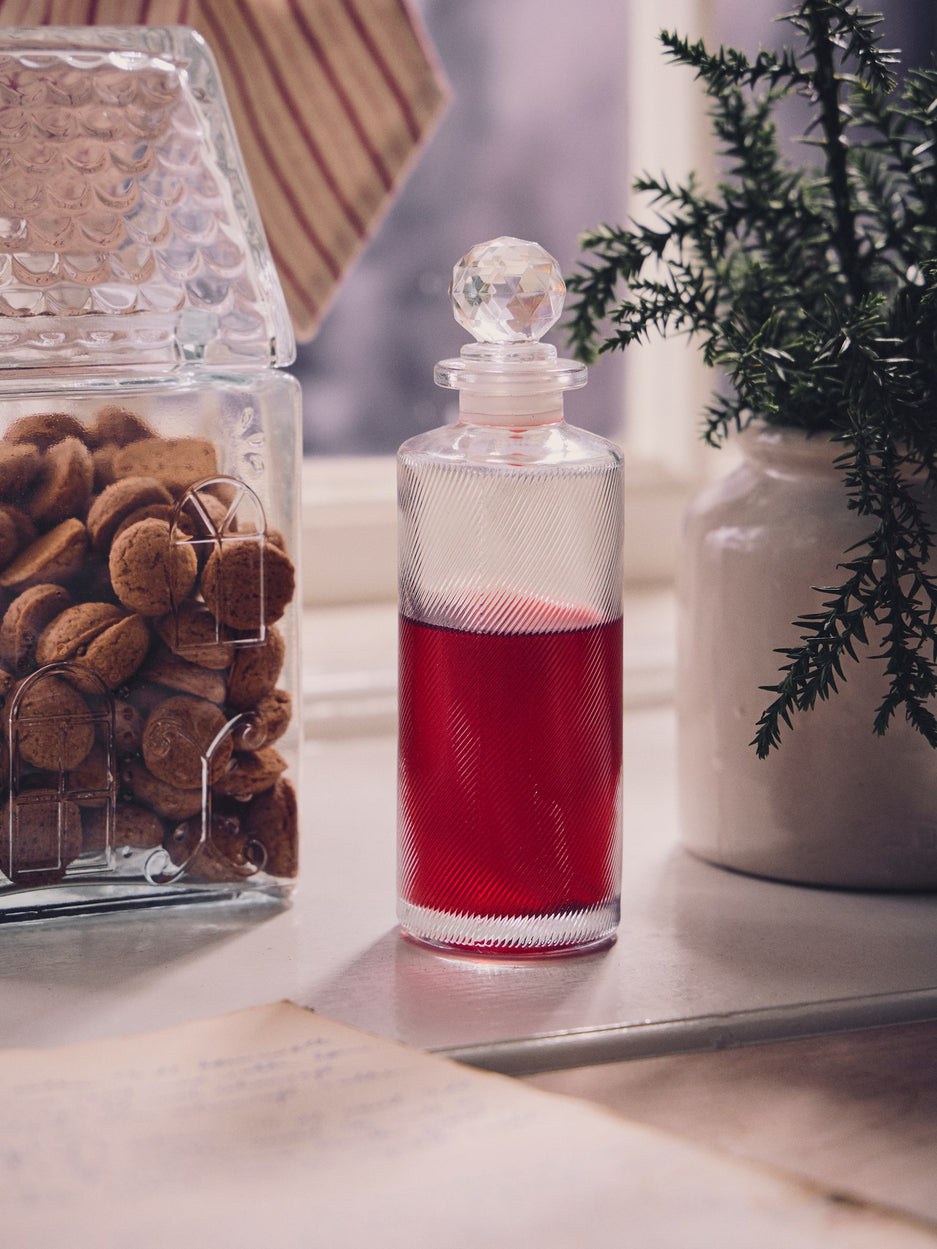 "Glass simply is a wonderful material," Anna says as she places this lovely bottle on a tray in the kitchen. "Depending on your interior, it can seem both modern and wonderfully classic."