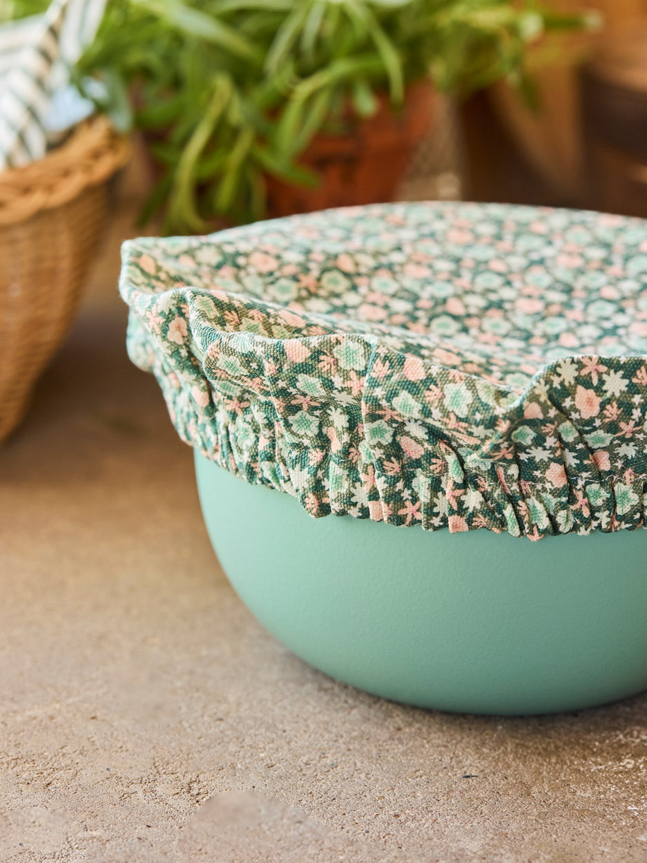 "These bowl covers are quite practical, dear Clara," Anna says, adjusting one over a dish. Clara adds, "They keep leftovers fresh and add a touch of charm to the kitchen."