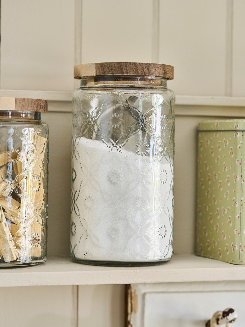 "Glass simply is a wonderful material," Anna says as she places this lovely jar on the kitchen table. "Depending on your interior, it can seem both modern and wonderfully classic."