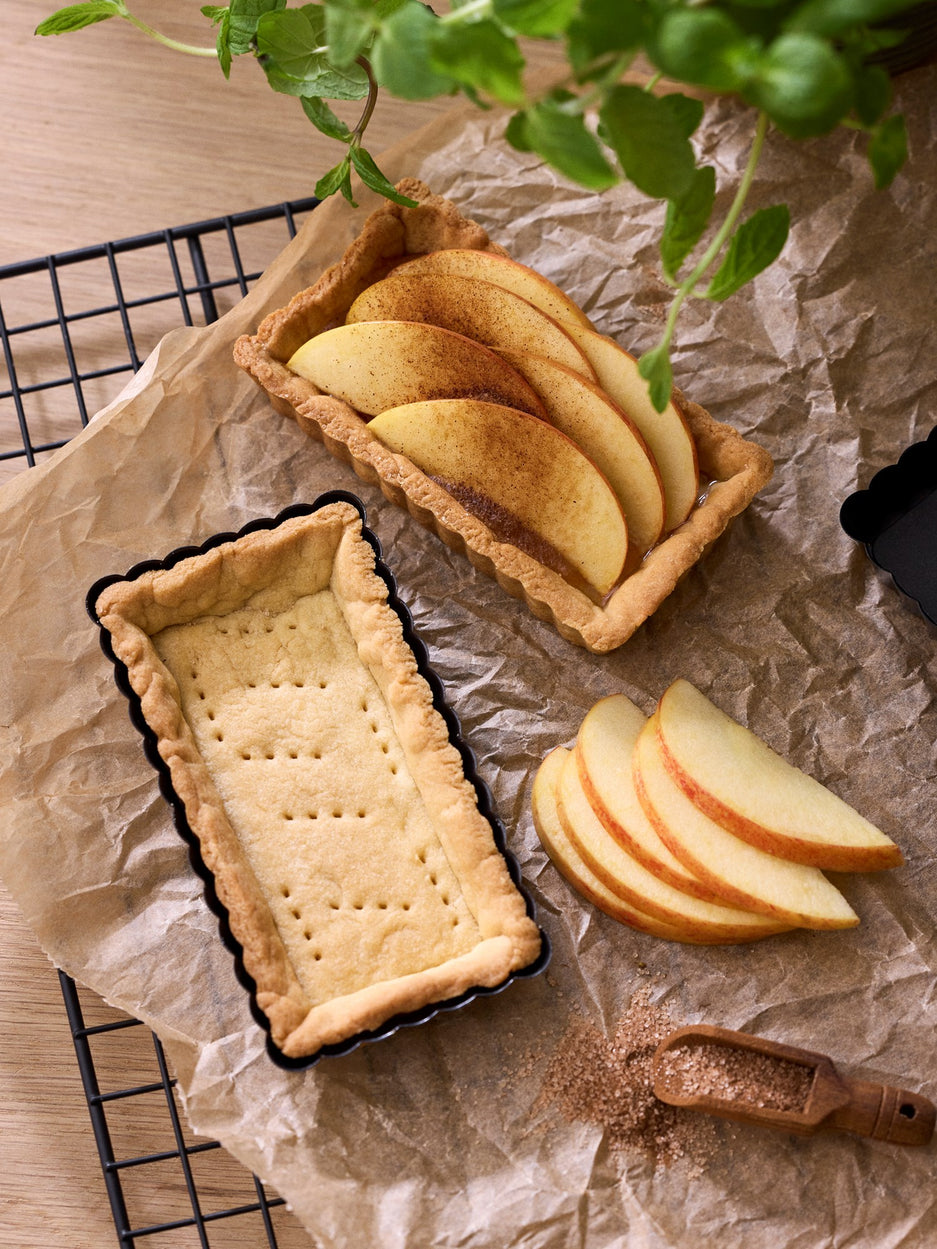 Anna happily prepares mini tarts using tart tins like this. "Such a fun way to bake treats," she exclaims. Clara smiles, adding, "They are so practical, as they can be stacked for easy storage."