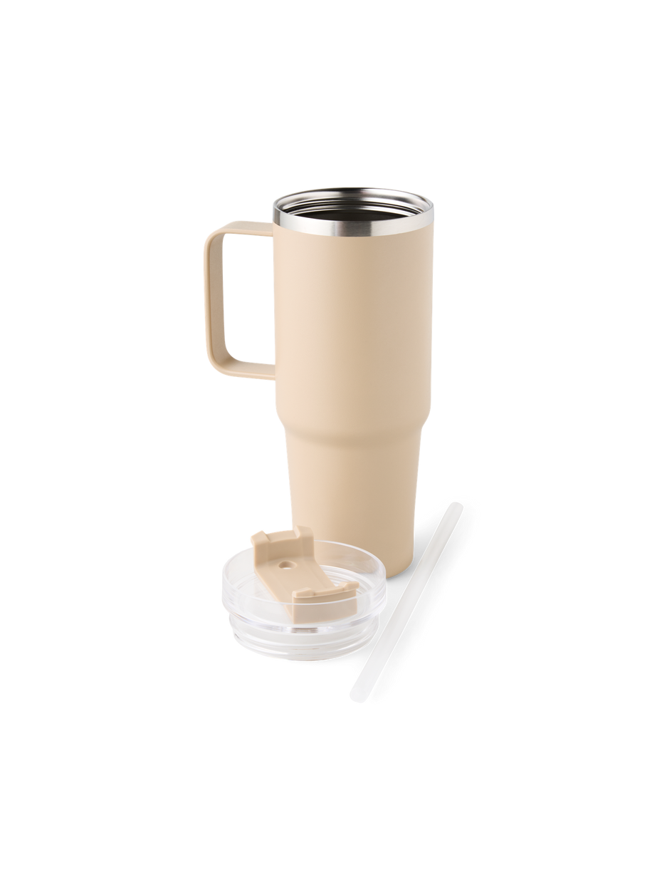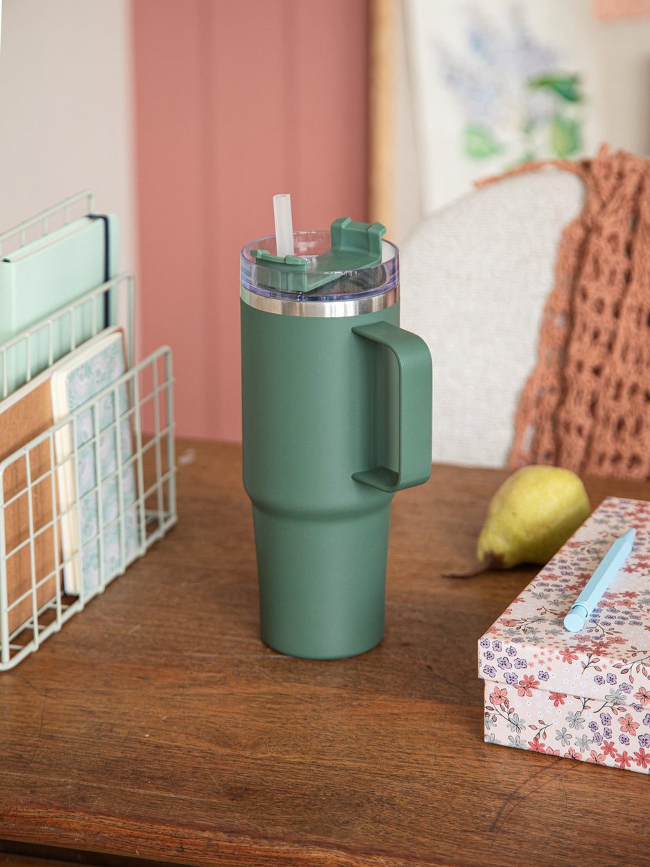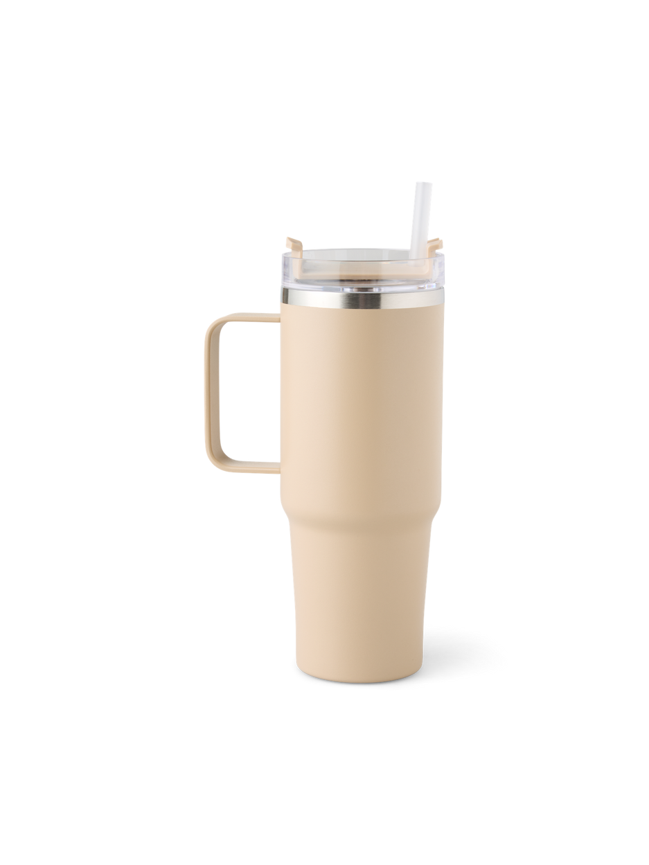 Anna and Clara find joy in sipping refreshing drinks from a charming mug with a handle and straw. "It is delightful for leisurely afternoons in the garden," Clara says. "Indeed, and it adds a playful touch to any table setting," Anna adds.