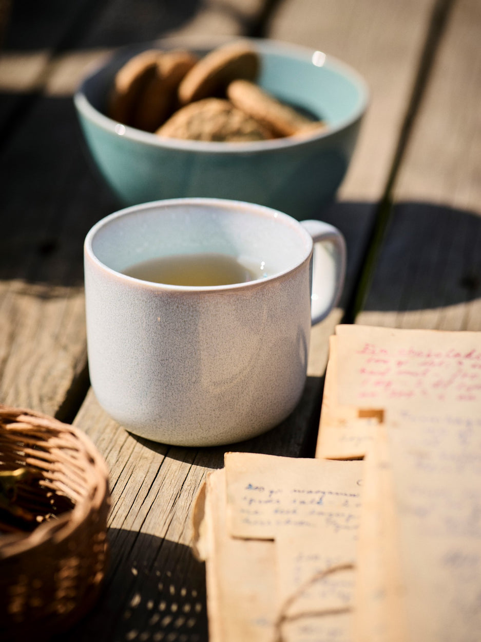 Anna gently places the mug on the table and smiles. "A warm cup of tea can make any day brighter," she muses. Clara adds, "And with its lovely design, it brings charm to every sip."
