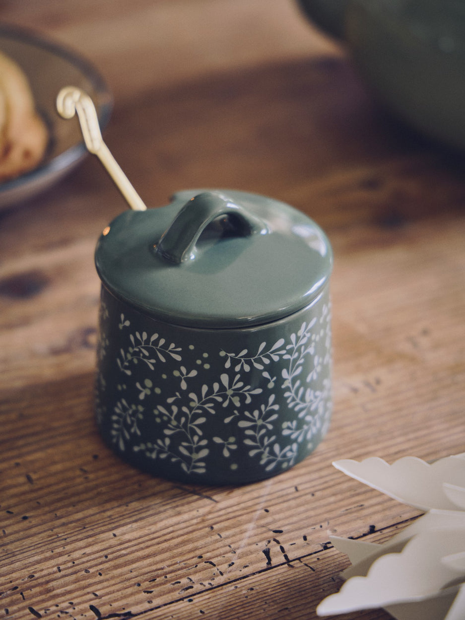 "This sugar bowl adds a touch of charm to any festive table," Anna says, admiring its design. Clara observes, "It is both delightful and practical, perfect for serving sweet treats during the holidays."