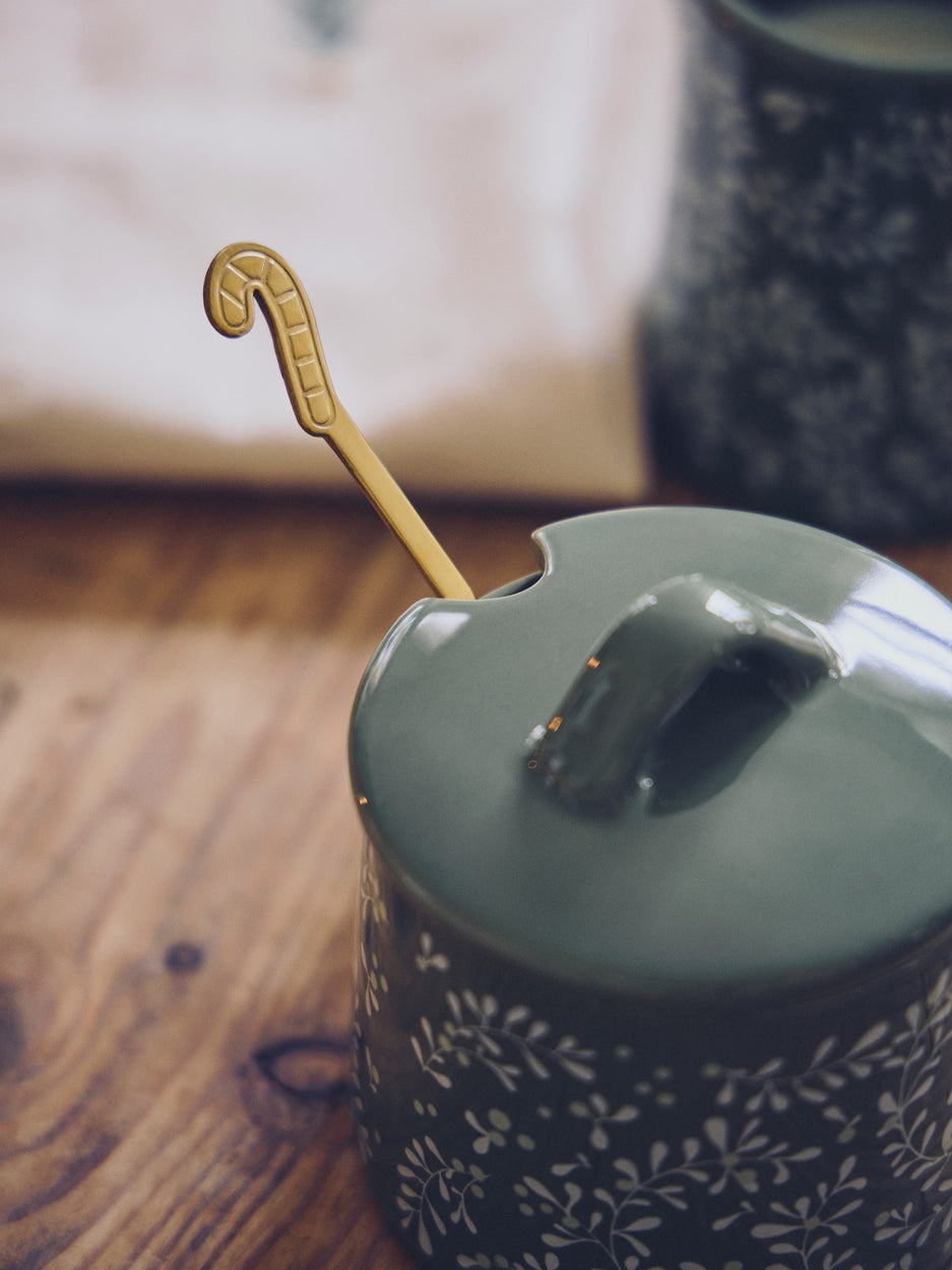 "How delightful this spoon is with its candy cane handle," Anna exclaims, twirling it playfully. Clara adds, "It brings a touch of whimsy to any table setting, perfect for festive gatherings."