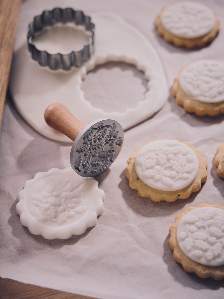 In the cosy kitchen, Anna carefully presses the cookie stamp into the dough, creating charming leaf patterns. "Baking becomes an art with such delightful tools," she says. Clara adds, "And each biscuit tells a story of creativity and warmth."