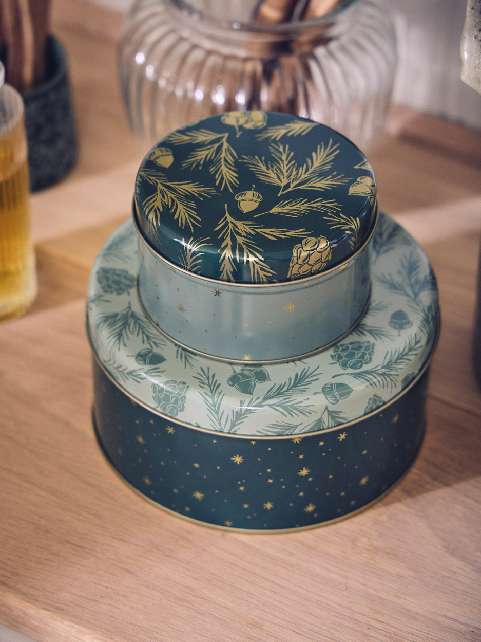 Clara gently places the round tin box on the table. "It is just the thing for keeping little treasures safe," she says. Anna adds, "Its charming design brings a festive touch to any kitchen or living space."