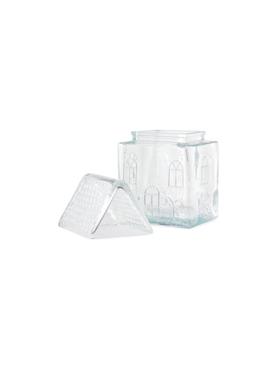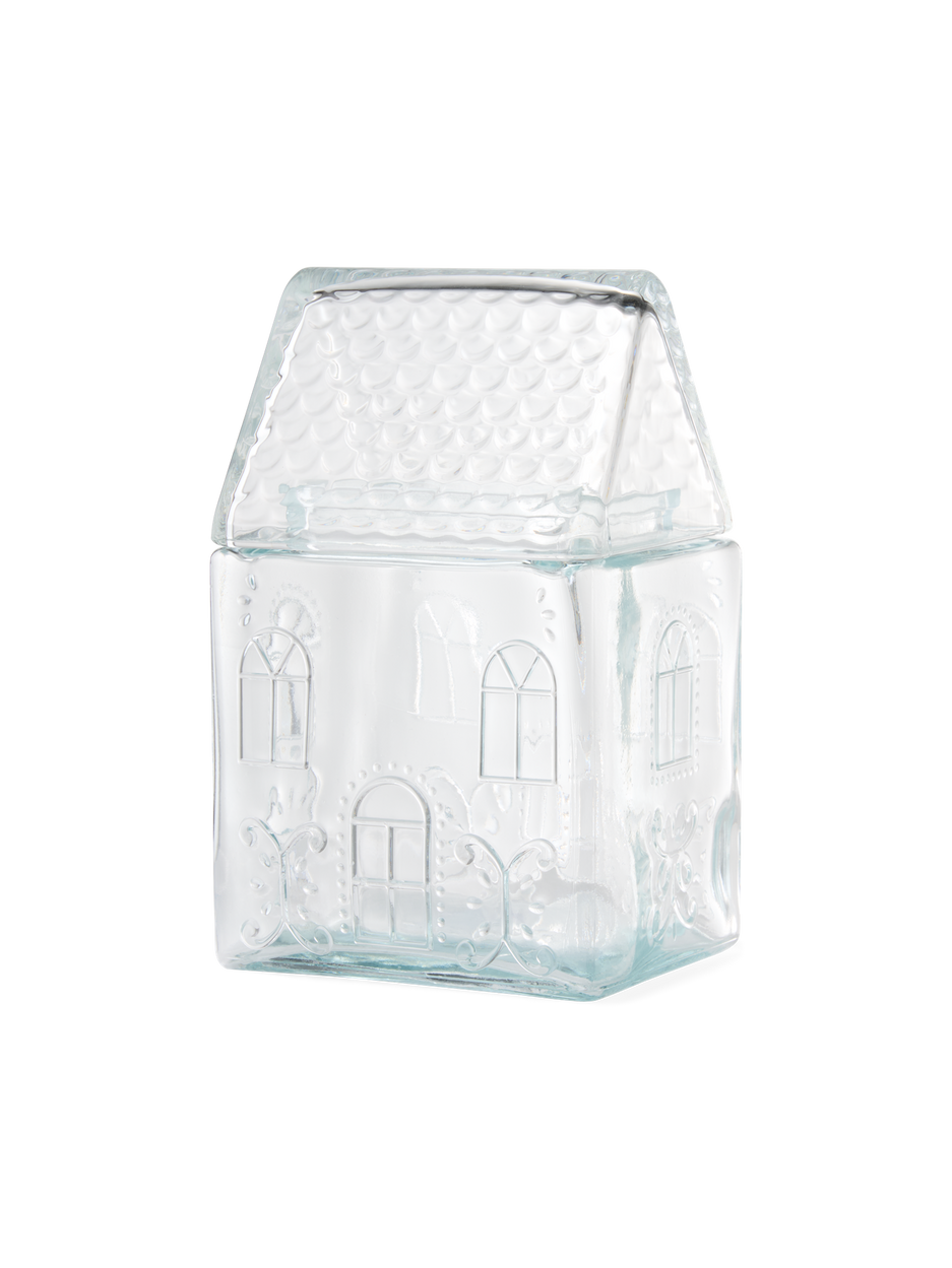 "This glass jar with its charming house design is both practical and decorative," Clara says, admiring its quaint details. "It adds a touch of whimsy to the kitchen, perfect for storing little treasures or festive treats."