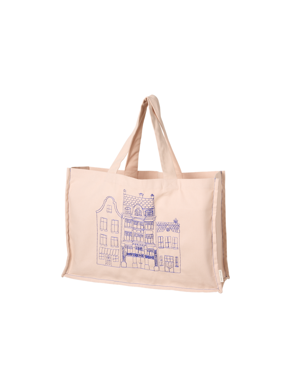 Anna holds up the spacious tote bag with delight. "This is perfect for carrying all our market finds," she says. Clara remarks, "Indeed, its size and style make it both practical and charming for any outing."