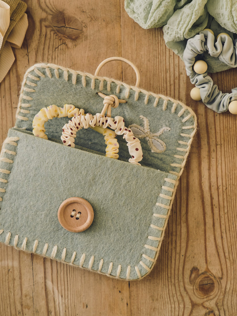 "This felt wallet is a charming companion for everyday outings," Anna notes, admiring its neat button closure. Clara adds, "It keeps essentials organised with grace, making each day a bit more delightful."
