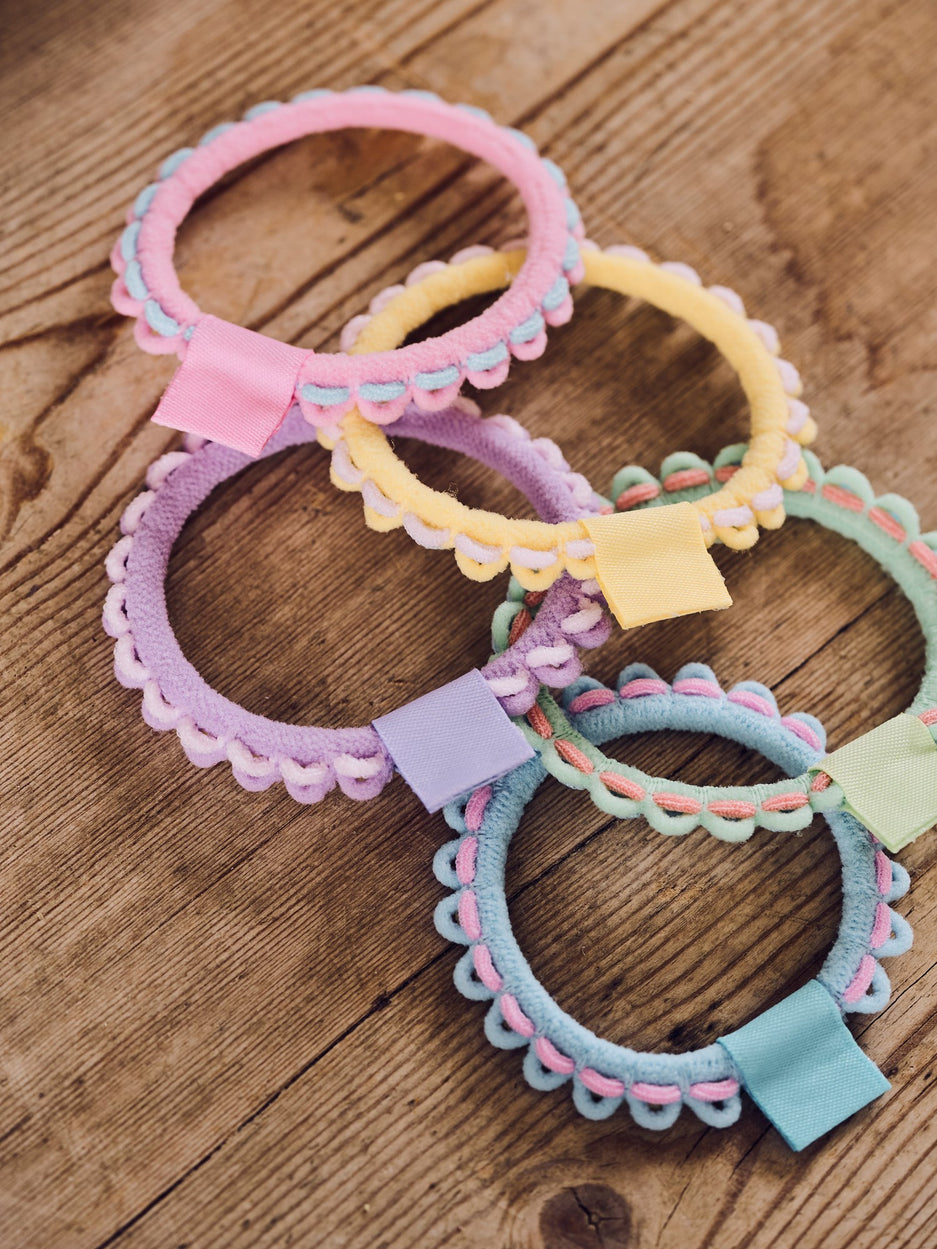 "These colourful hair ties add a playful touch to any hairstyle," Anna notes with a smile. Clara observes, "They are practical for keeping hair neat while brightening up one's look effortlessly."