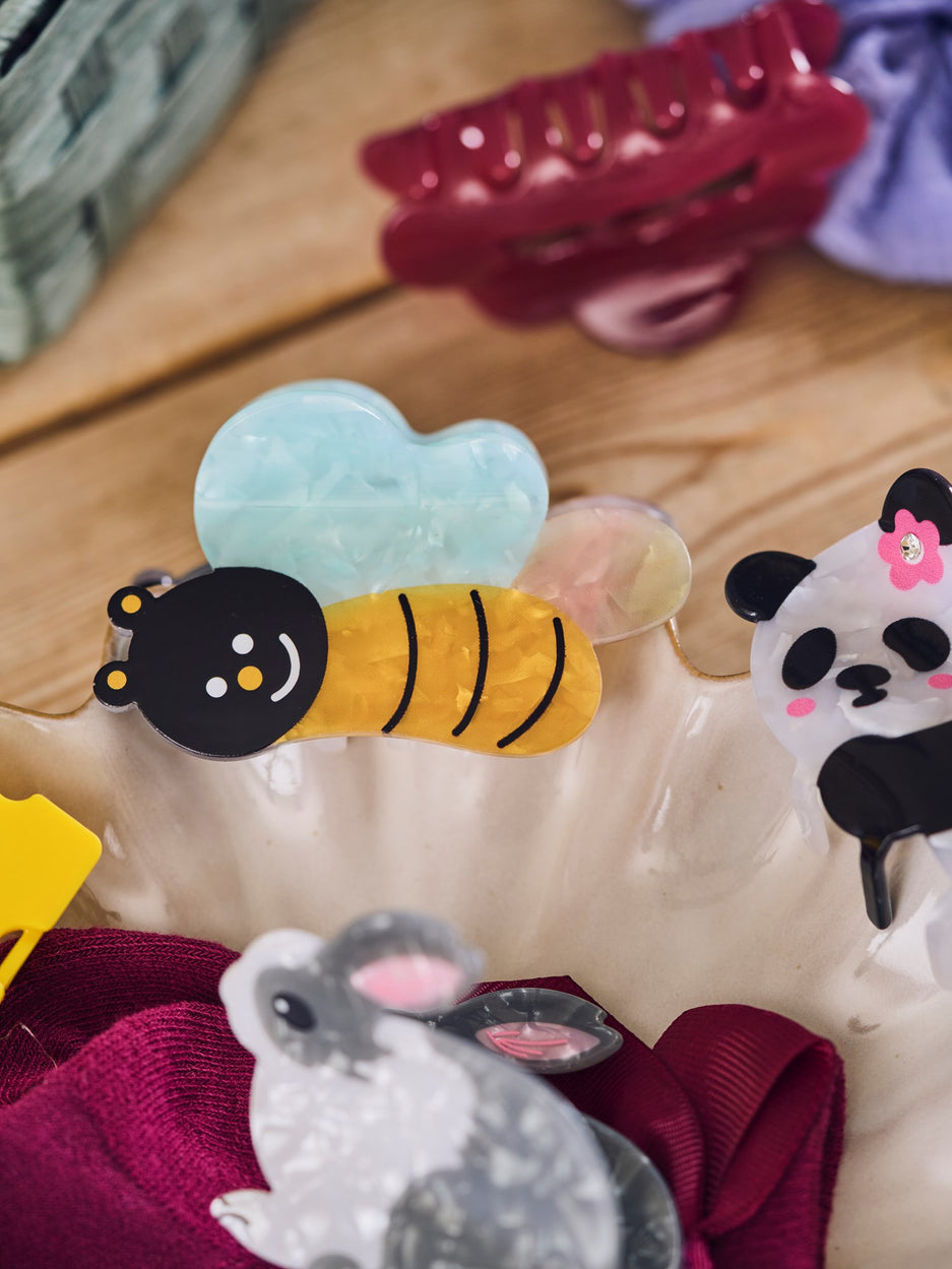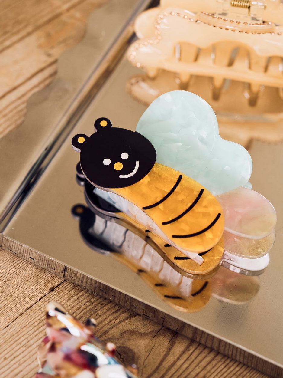 "A delightful little bee to adorn your hair," Anna notes, as she clips it into her niece's hair. Clara observes, "It brings a charming playfulness to any hairstyle, making every day a little brighter."
