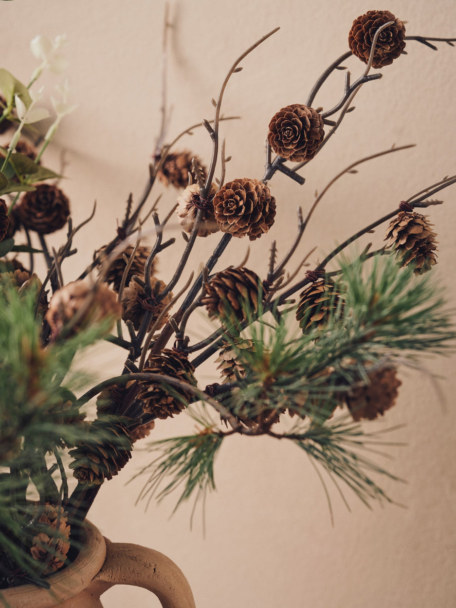 "An artificial branch with cones brings a touch of nature indoors," Clara finds. Anna adds, "It creates a cosy atmosphere without the need for maintenance, perfect for any room in the home."