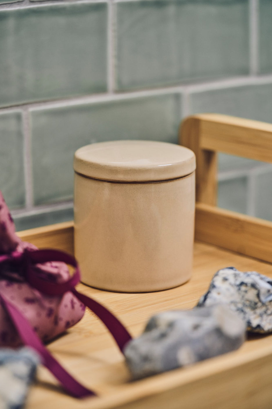 "A decorative jar with a lid brings such charm to a bathroom shelf," Clara notes. "And it keeps tiny treasures neatly tucked away," Anna adds with a smile.