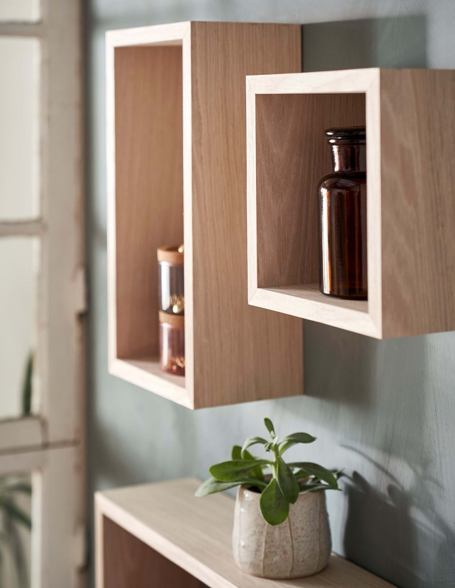 MDF/eik spónn. 19.5 x 12 x 19.5 cm.