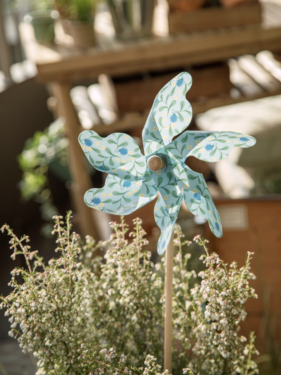 "Place this charming pinwheel in the garden for a touch of whimsy," Anna says, watching it spin in the breeze. "It brings joy to both young and old," Clara adds with a smile.