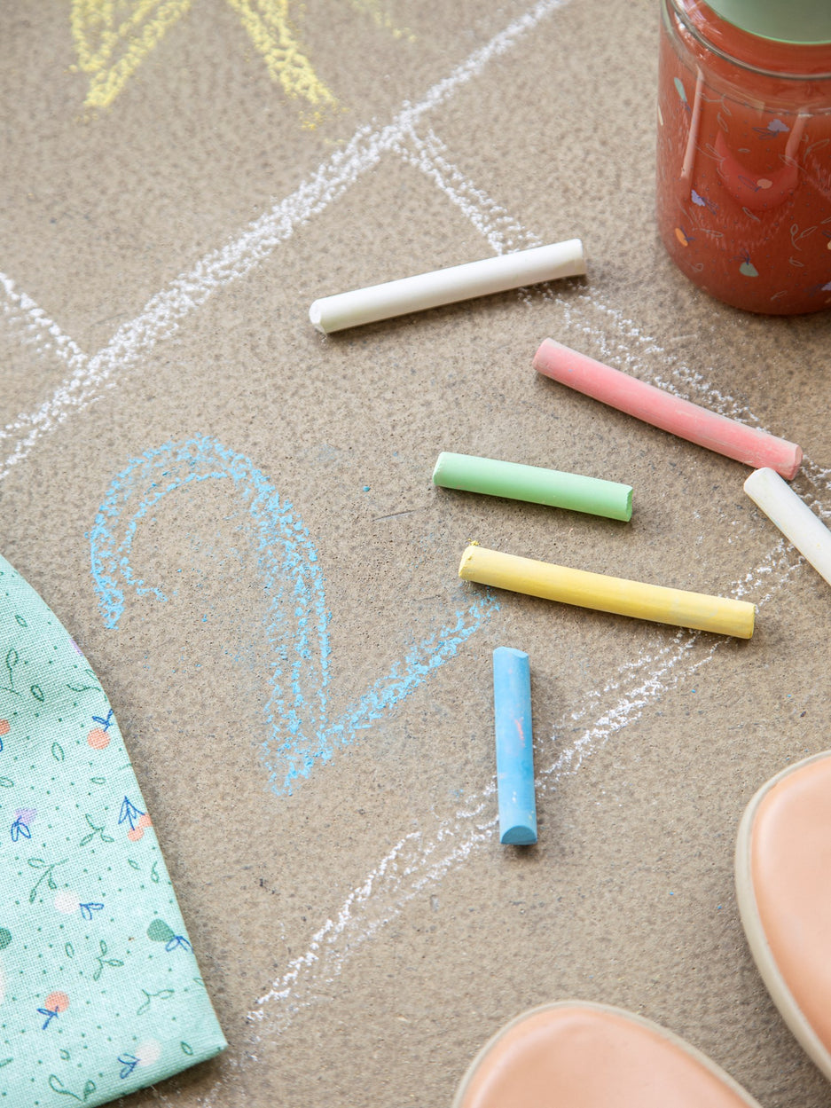 "Children's creativity knows no bounds with a bit of chalk in hand," Clara says, watching the children draw. "A simple tool that brings endless joy and imagination," Anna adds with delight.
