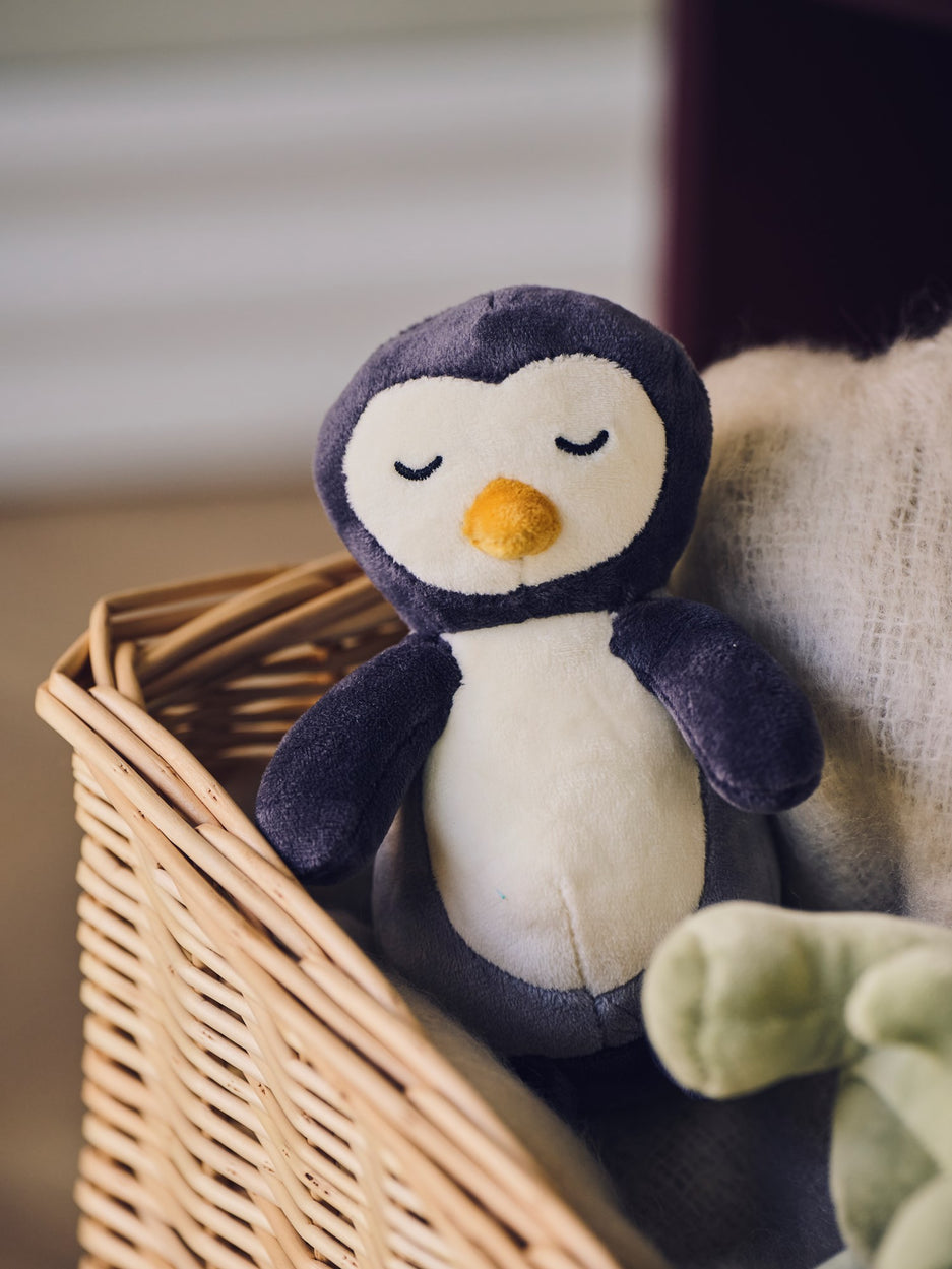 The children delight in the company of a plush penguin toy, a soft companion for their imaginative adventures. "It is perfect for cuddles and storytelling," Clara exclaims. "A charming friend for their playtime," Anna smiles.