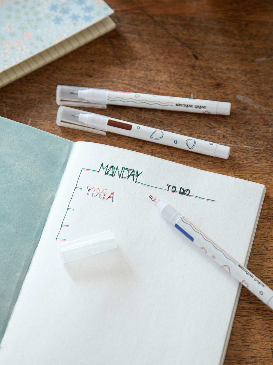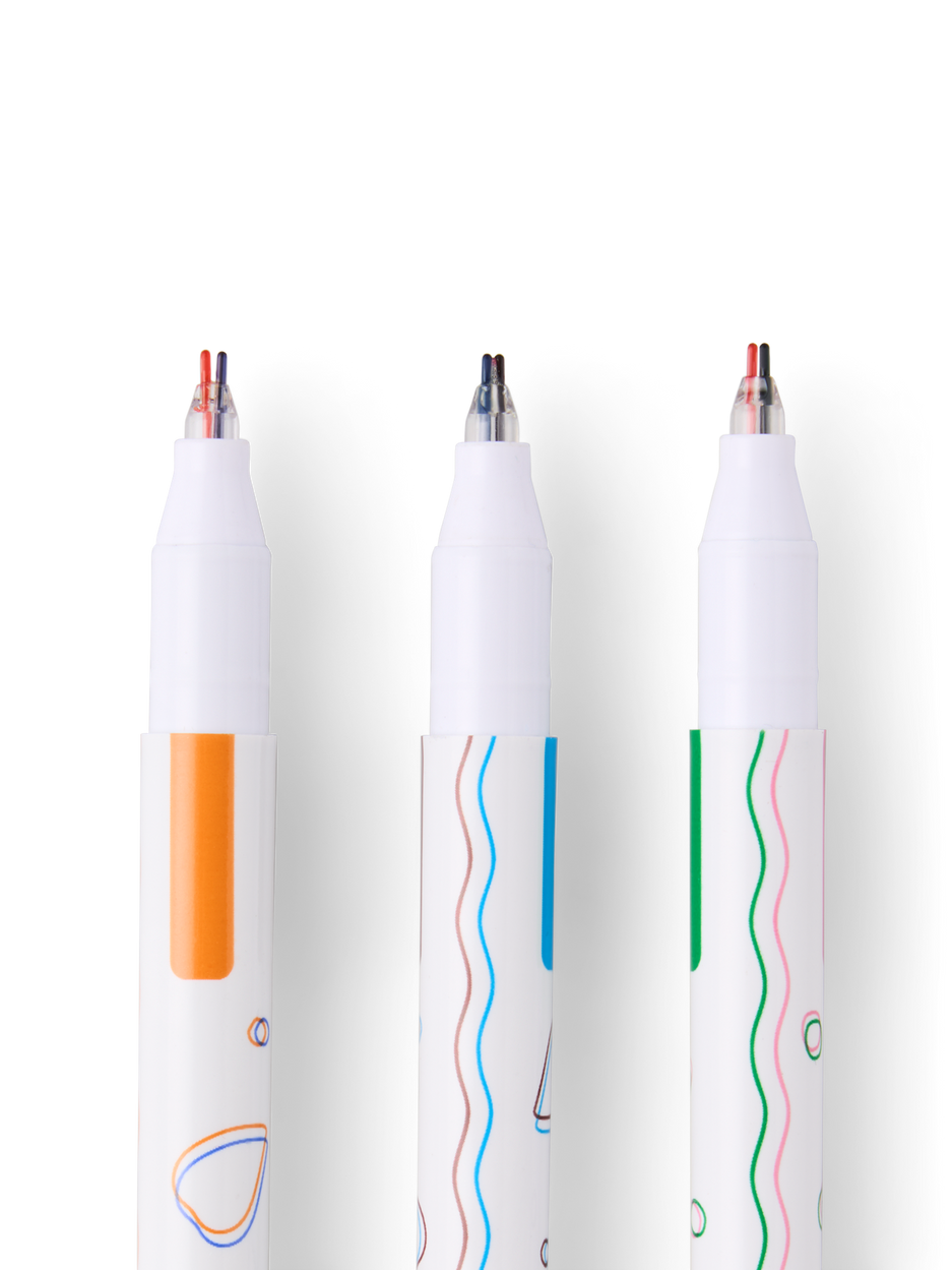 "These double line pens make writing a delightful experience," Clara explains, admiring the vibrant colours. Anna adds, "They are perfect for adding a creative touch to letters and notes."