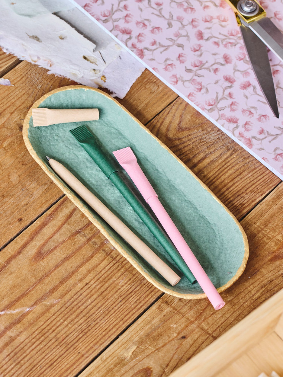 Anna arranges her pens and paperclips with a flourish, saying, "A tray brings such order to a creative desk." Clara adds, "It helps keep important items within easy reach, making every workday a little more harmonious."