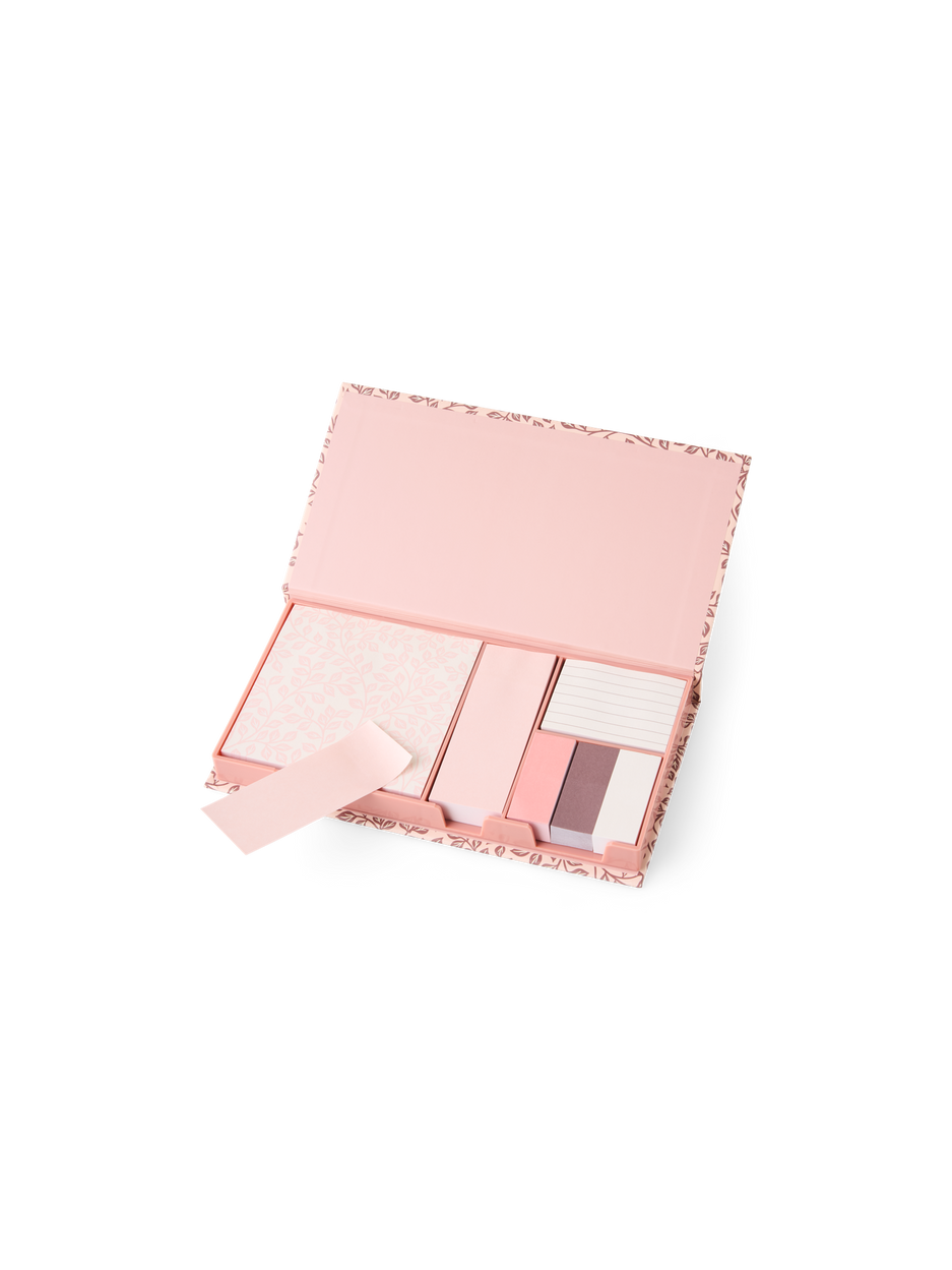 "Organising thoughts is a delightful task with this charming box of sticky notes," Clara notes, arranging them on her desk. Anna observes, "They add a touch of creativity to daily reminders and inspire little bursts of imagination."