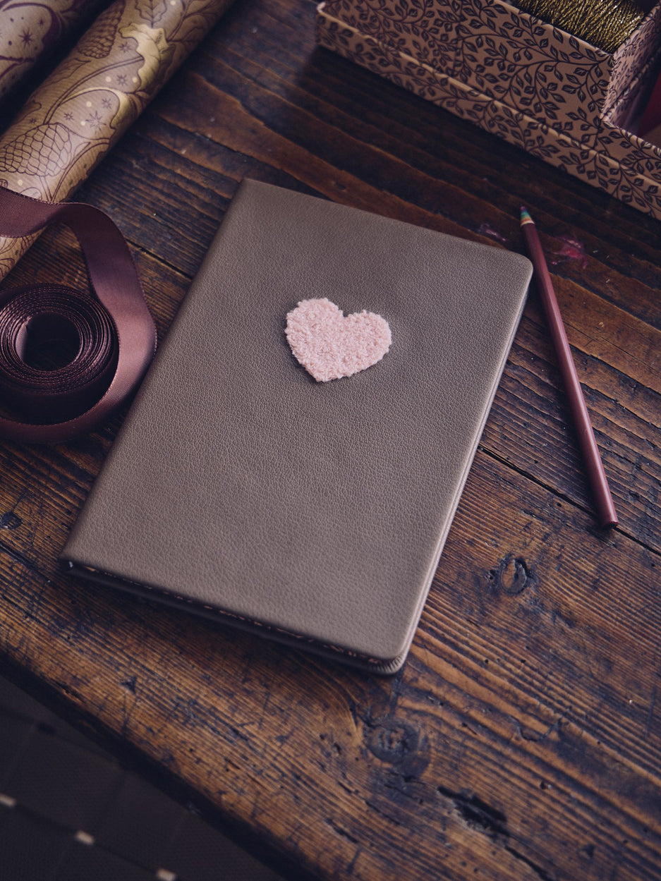 "Notebooks can hold our dreams and daily musings," Clara says with a gentle smile. Anna chimes in, "And this heart pattern is a delightful way to express one's sentiments."