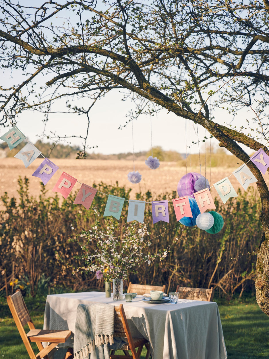Festive letters strung across the room bring a joyful spirit to any celebration. Anna says, "A birthday garland adds a playful charm to our gatherings." Clara adds, "It helps set the scene for cherished memories together."