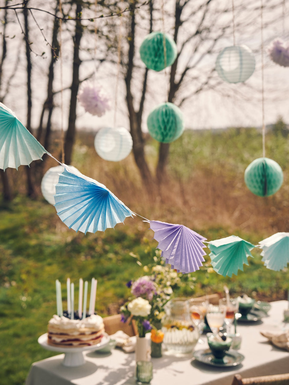 Festive gatherings are made all the more delightful with a paper fan garland gently swaying above the table. Anna adds, "Such cheerful decorations bring a sense of celebration to every corner." Clara continues, "And they are wonderfully practical, as they are easy to hang and store for the next occasion."