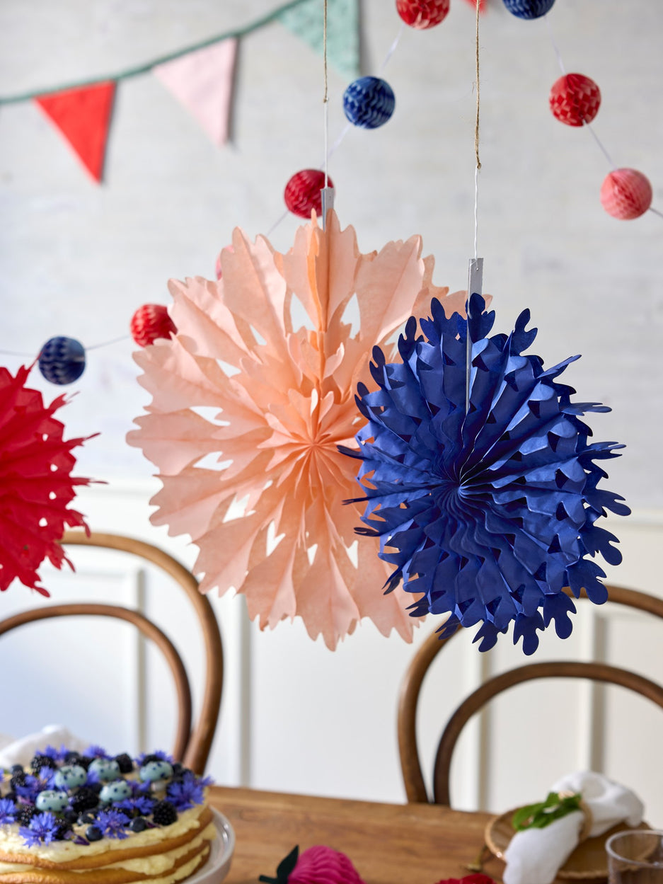 Anna and Clara find joy in transforming spaces for celebrations. "These paper fans bring a festive flair to any gathering," Clara says with delight. Anna smiles, "Their vibrant colours and patterns create a cheerful atmosphere."
