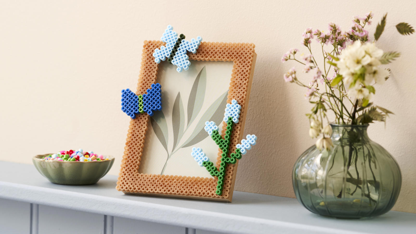 Beads offer a wealth of opportunities, and with the sisters' templates, making lovely creations becomes a breeze. Here, the nieces have decorated a frame with charming shapes. "A lovely activity for children and adults alike," Anna smiles.