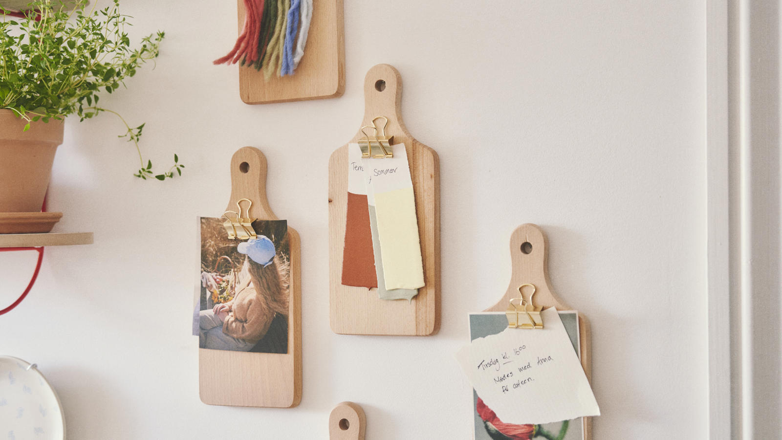 "Photos are memories on paper," the sisters believe. They enjoy displaying pictures, children's drawings, museum tickets, and other lovely treasures on their walls. That is why Anna has made her own clipboards from cutting boards, so that the photos and drawings can easily be replaced.