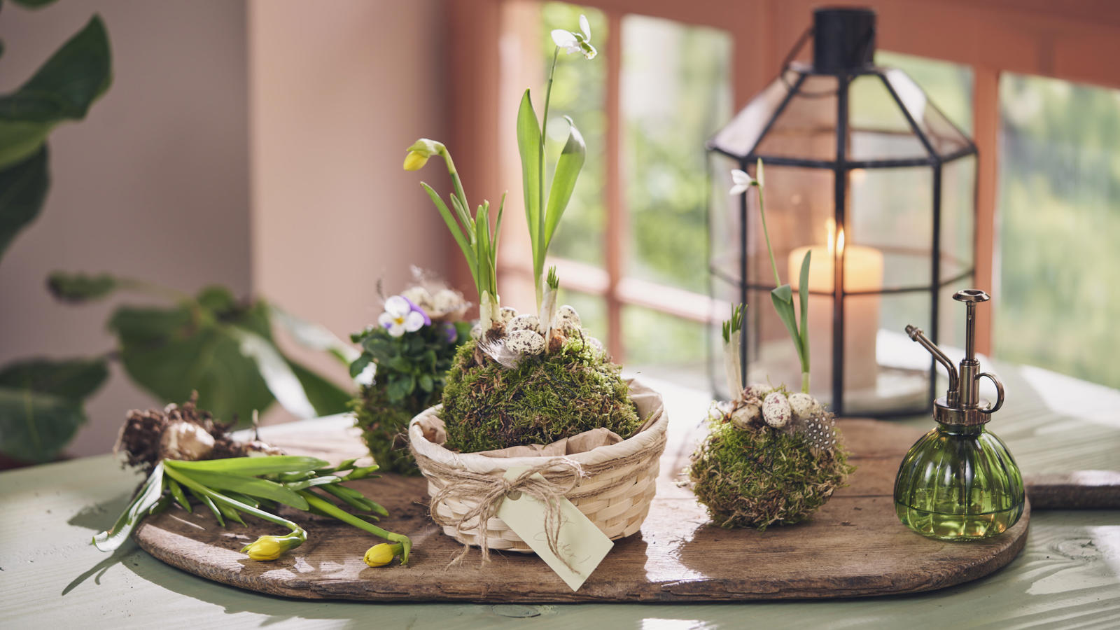 Place decorative paper at the bottom of a basket, and lay the moss egg inside. Write a small Easter greeting on a manila tag, and tie it to the basket with jute string.