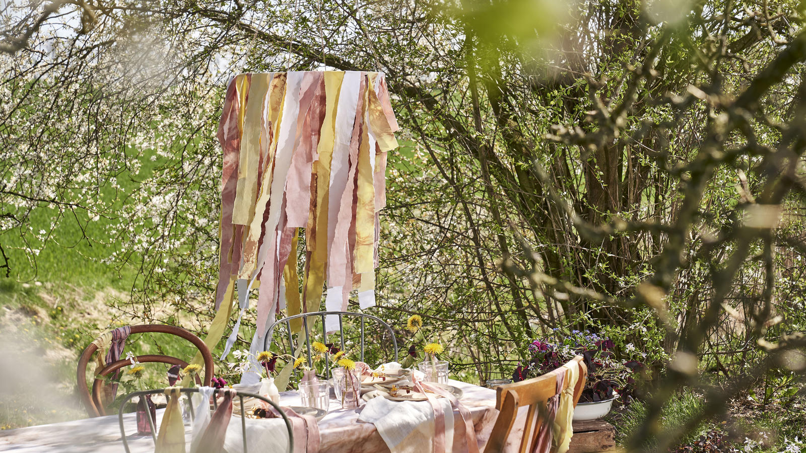 From time to time, the sisters enjoy making projects together. While Clara dyes the textiles, Anna makes sure to combine the strips so the mobile can achieve the perfectly imperfect look. "It is quite easy to dye fabric with resources from the kitchen. Avocado peels, red onion peels and turmeric - you can use any of these," Clara smiles.