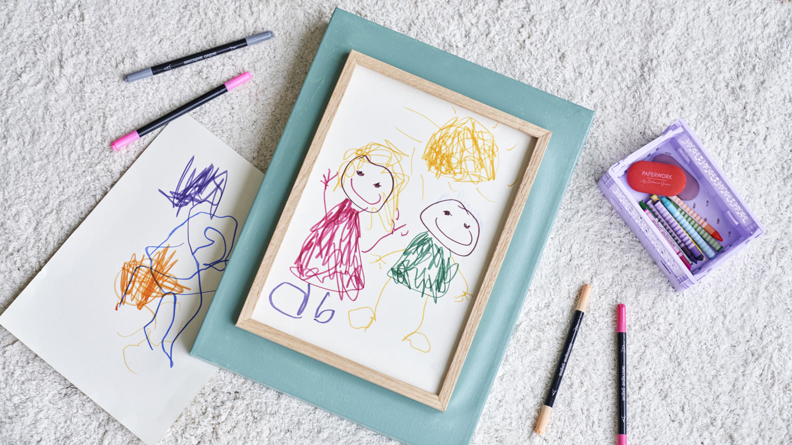 "Children's drawings should be displayed as art pieces," Anna believes. That is why she has created this lovely frame, where you can easily replace the drawings when new ones are added. "The little ones will experience how their creativity is appreciated," Clara adds. "And furthermore, it is perfect for the children's room, so the children themselves can decorate the walls with homemade creations."