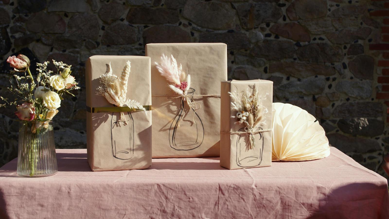 Make something special out of the gift-wrapping by adding dried flowers for the recipient to keep. "The wrapping is half the gift," says Anna, who loves to see the recipient's joy when a beautiful gift is given.