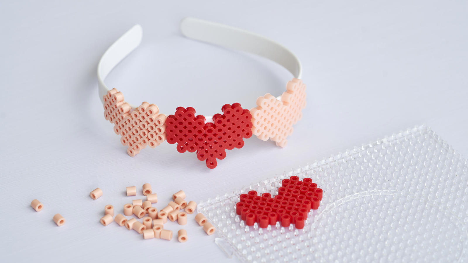 While the hearts are still warm, bend them slightly to fit onto your hairband.