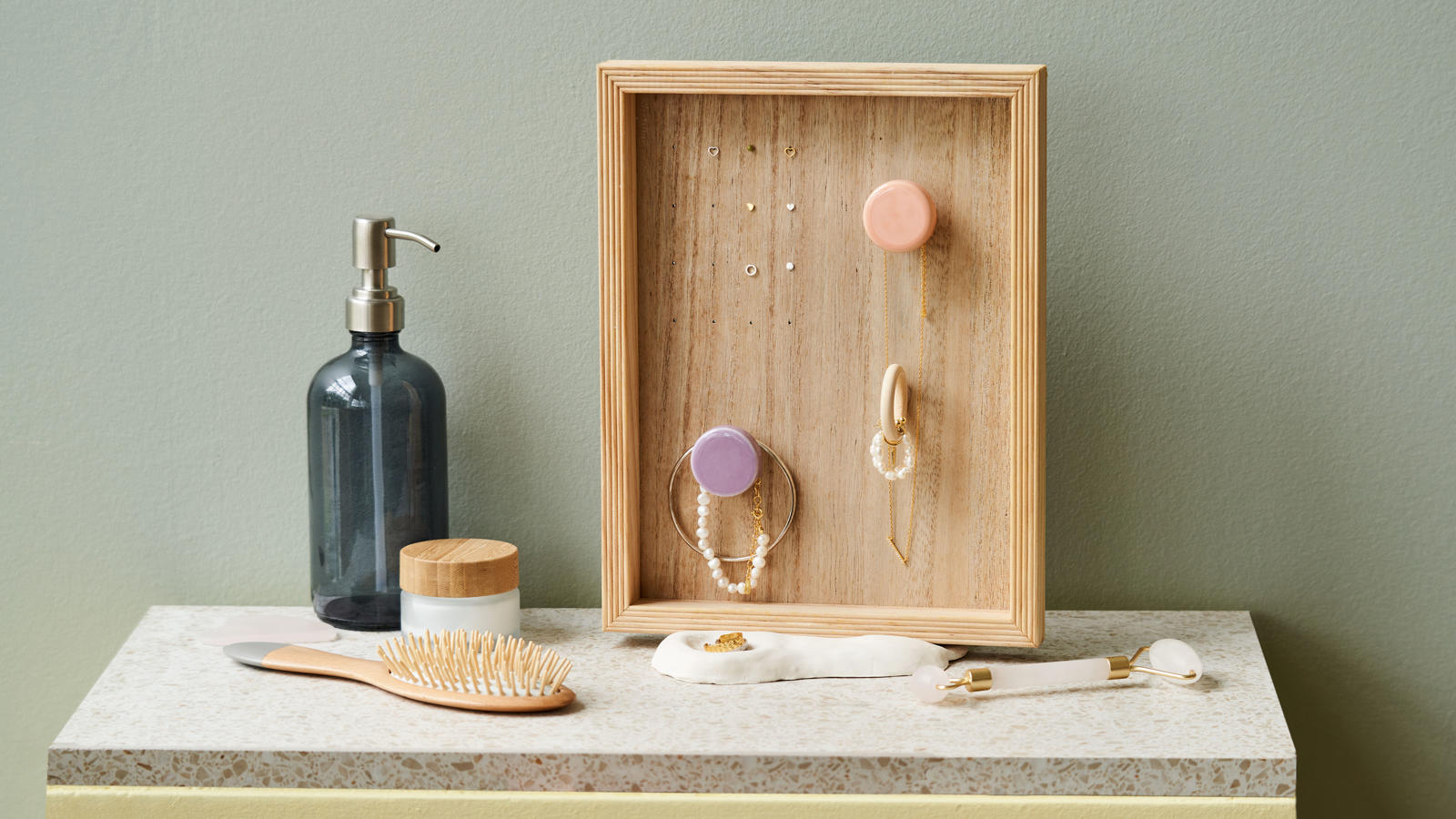 Glue the wooden tray to the clay foot. The jewellery stand is now ready to use.