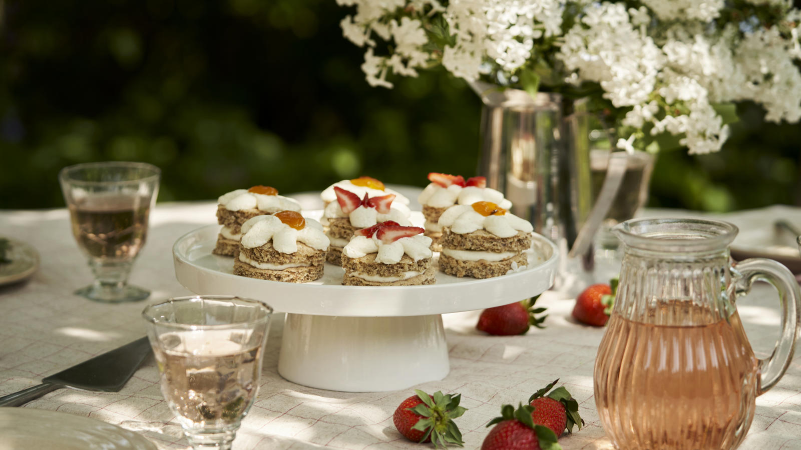 According to the sisters, every birthday or other festive occasion calls for cake. Follow the sisters' recipe for mini layer cakes with nuts, yoghurt icing, and jam and let the cake be an eyecatcher on the dessert table. The recipe makes 7-8 mini layer cakes.