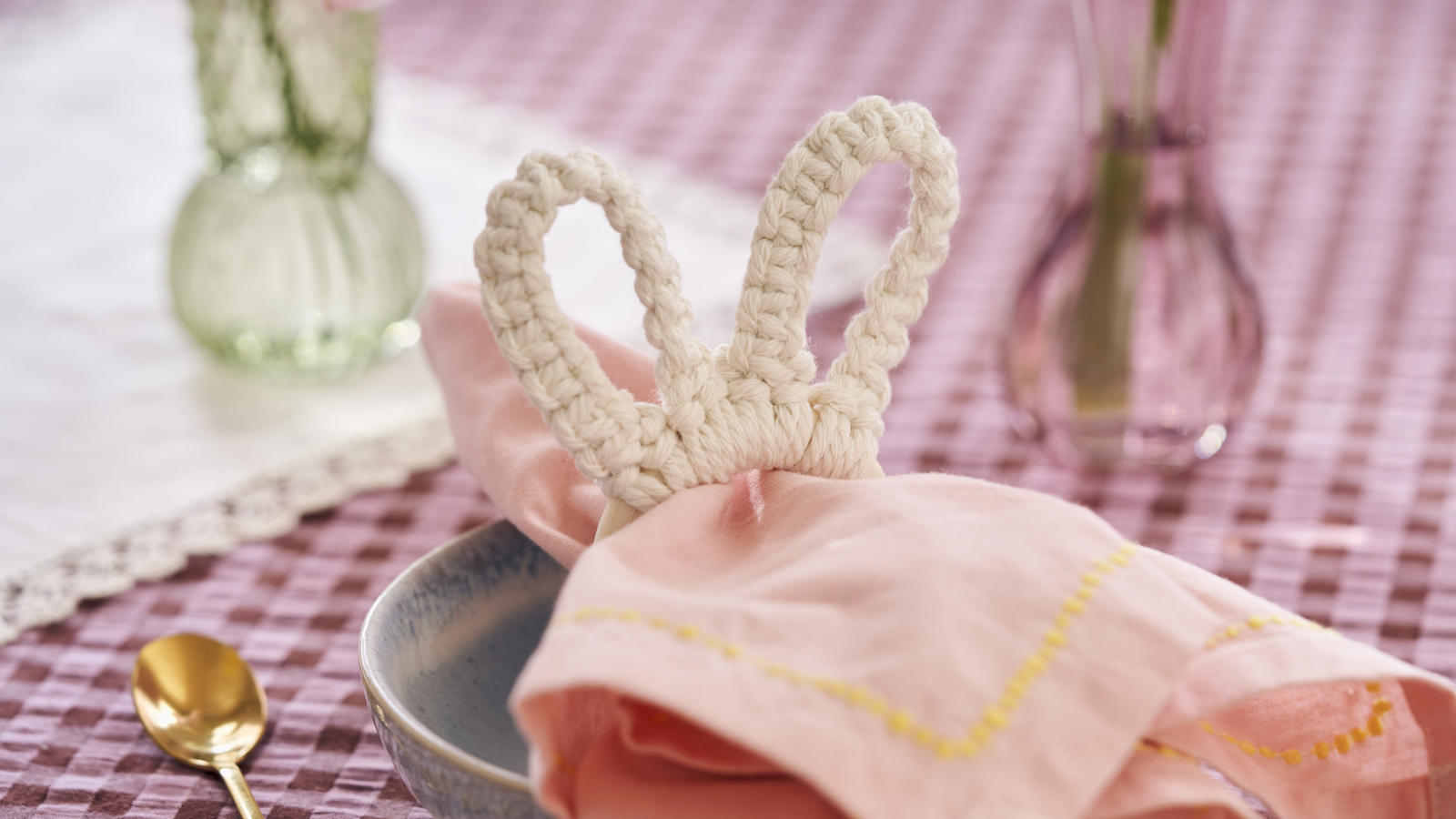 These sweet, macramé-inspired napkin rings with bunny ears delight both young and old at the sisters' beautifully set Easter table. Anna has to explain several times how she made them, and as she says, "It is not that difficult once you get the hang of it."