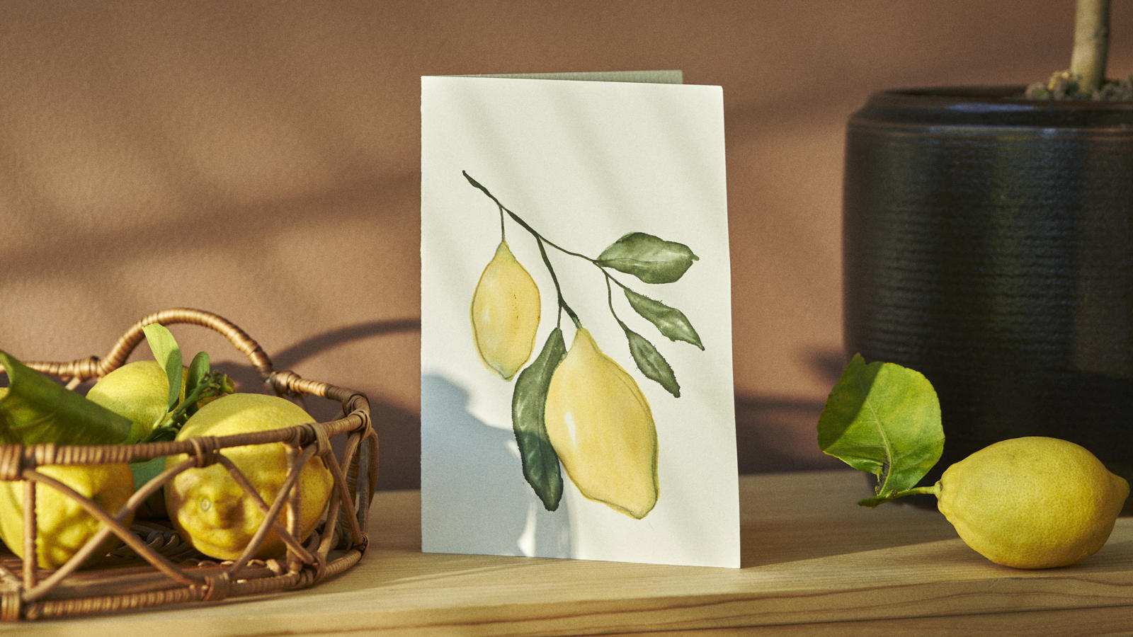 Sketch the desired motif with a pencil on watercolour paper. Anna has chosen lemons as her motif. If you wish to create a greeting card, you can fold the paper in half so that it can be opened.