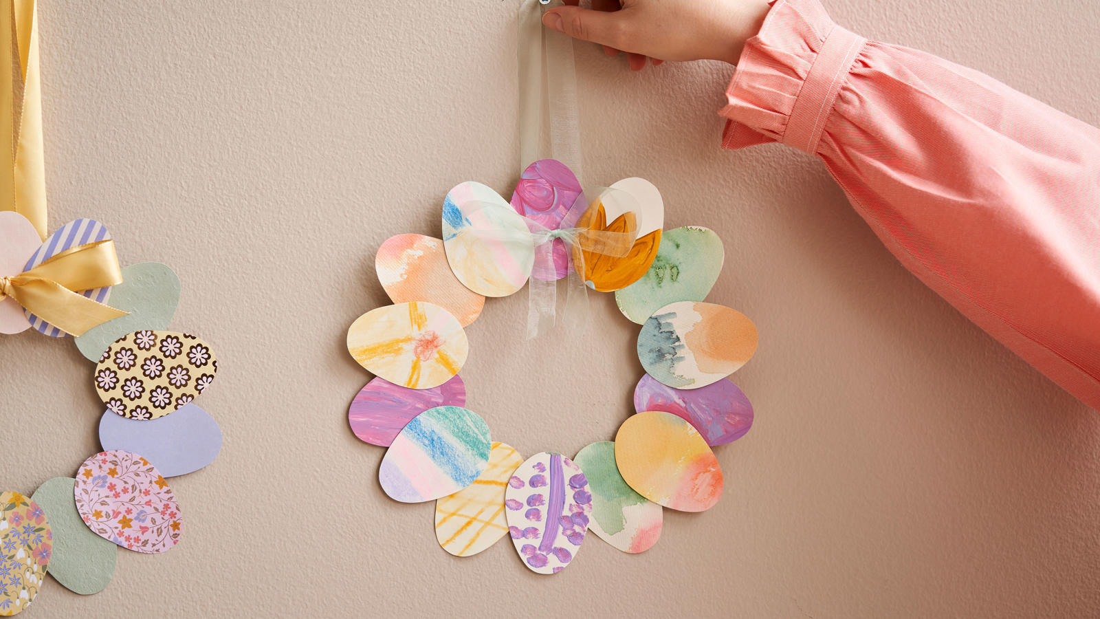 Place the cut-out eggs on your ring to make a wreath and glue them on.