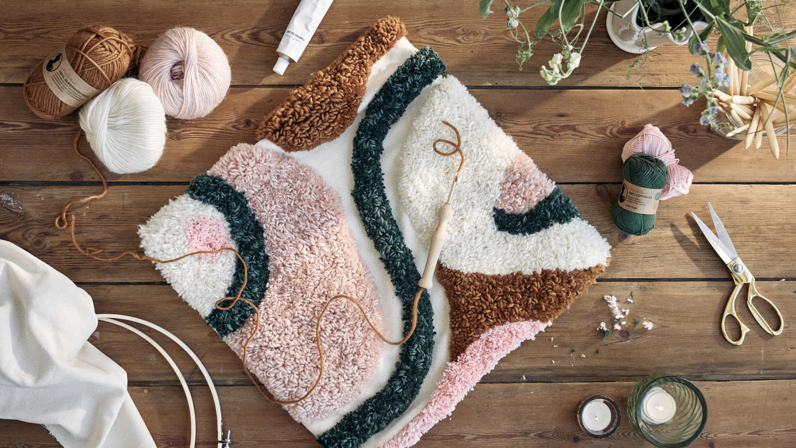 Anna can easily spend many, many hours in the world of tufting. "One can become completely immersed in yarn, colours, and patterns," Anna exclaims delightedly. Learn to do the popular craft with Anna's guide for a pretty throw pillowcase.