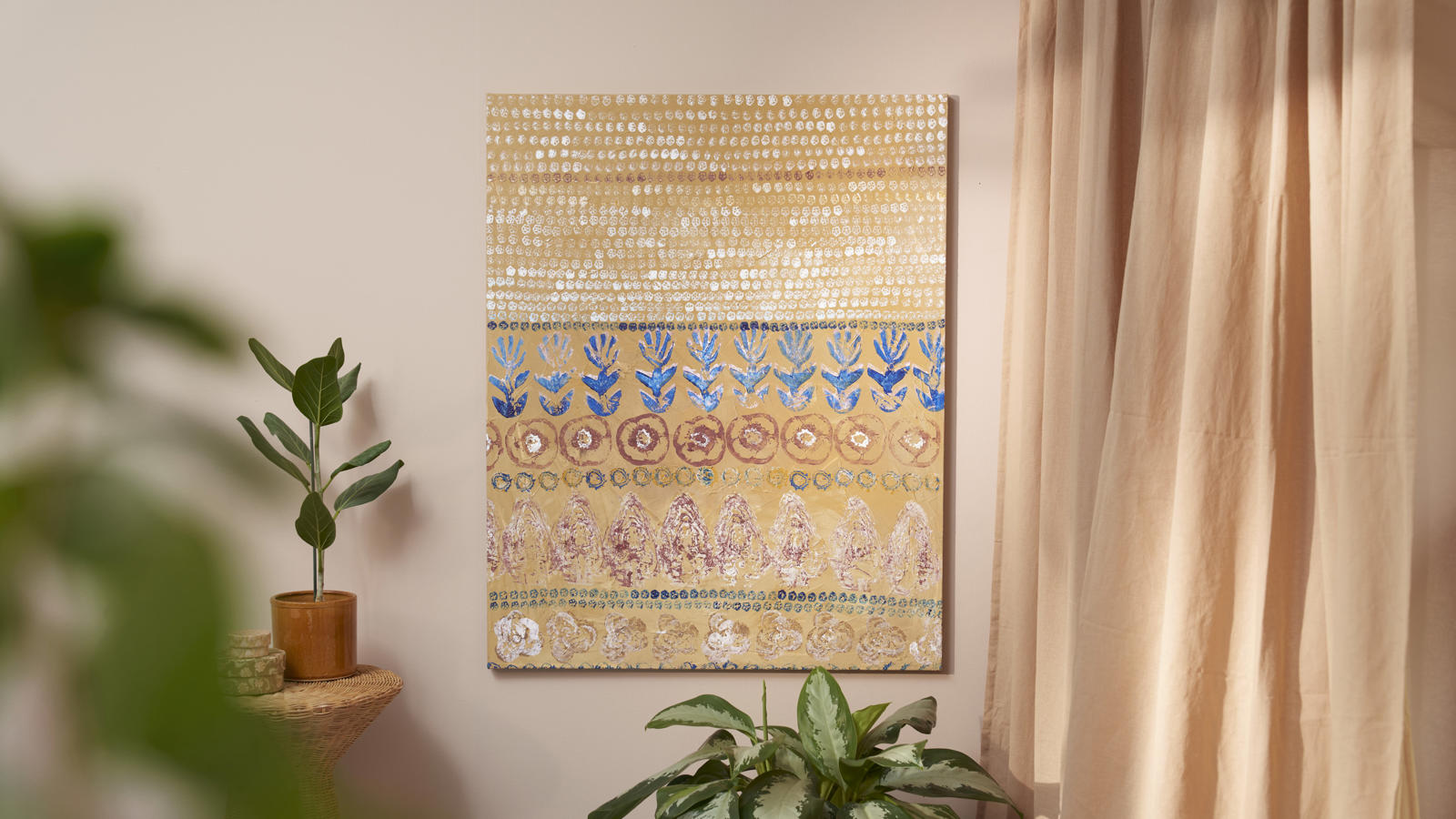 Begin by covering the canvas with a background colour: mix an acrylic paint of your choice with baking soda or baking powder, and spread the mixture with a palette knife on the canvas. Allow this to dry before the next step.