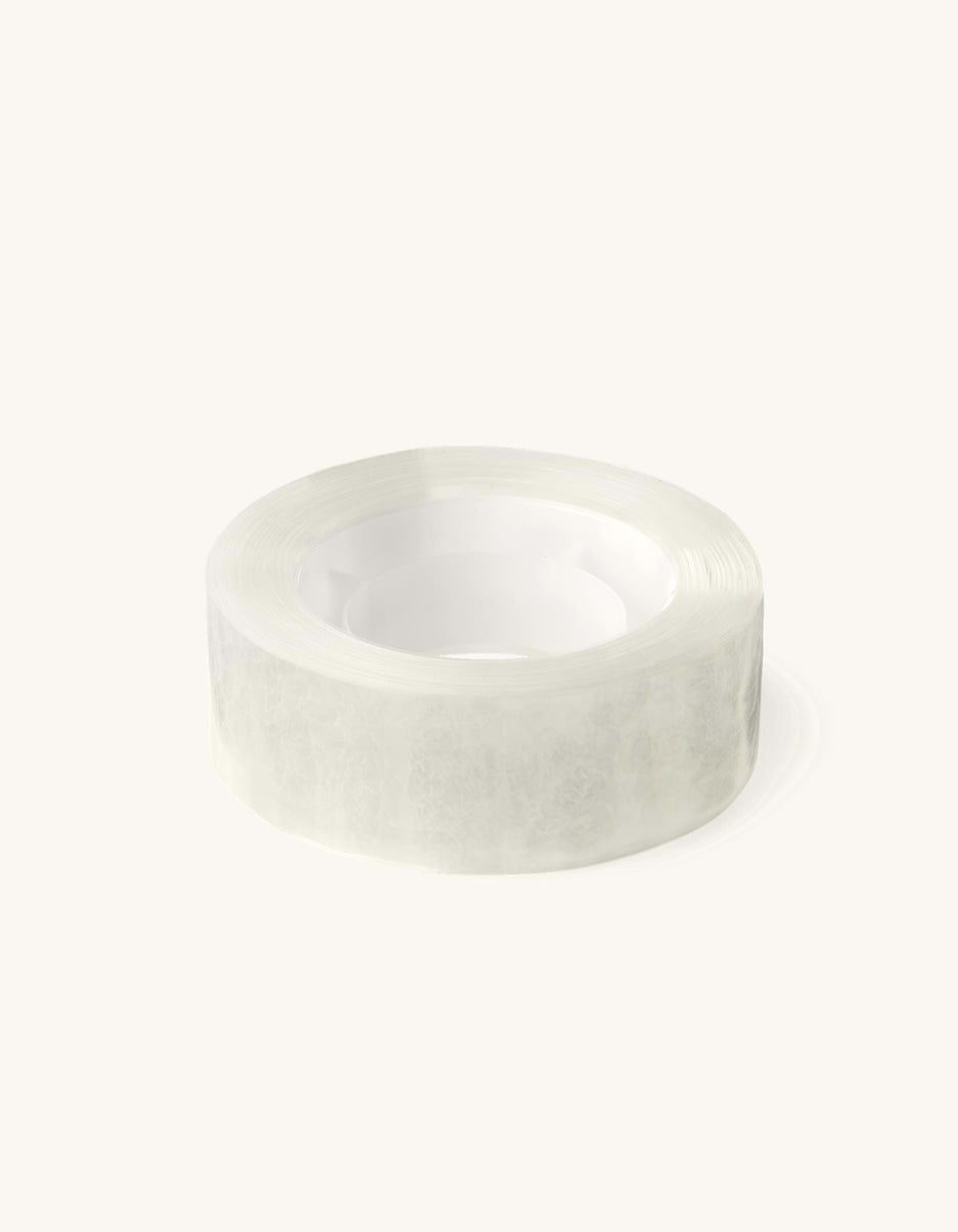 Adhesive tape, also called sticky tape, has many uses; wrapping gifts, putting up a child’s first drawings, removing your pets’ fur from your clothes, and so on. This transparent tape roll is 1.8 cm x 30 m. Anna and Clara recommend that you place the tape roll in a tape dispenser to make it easier to use.