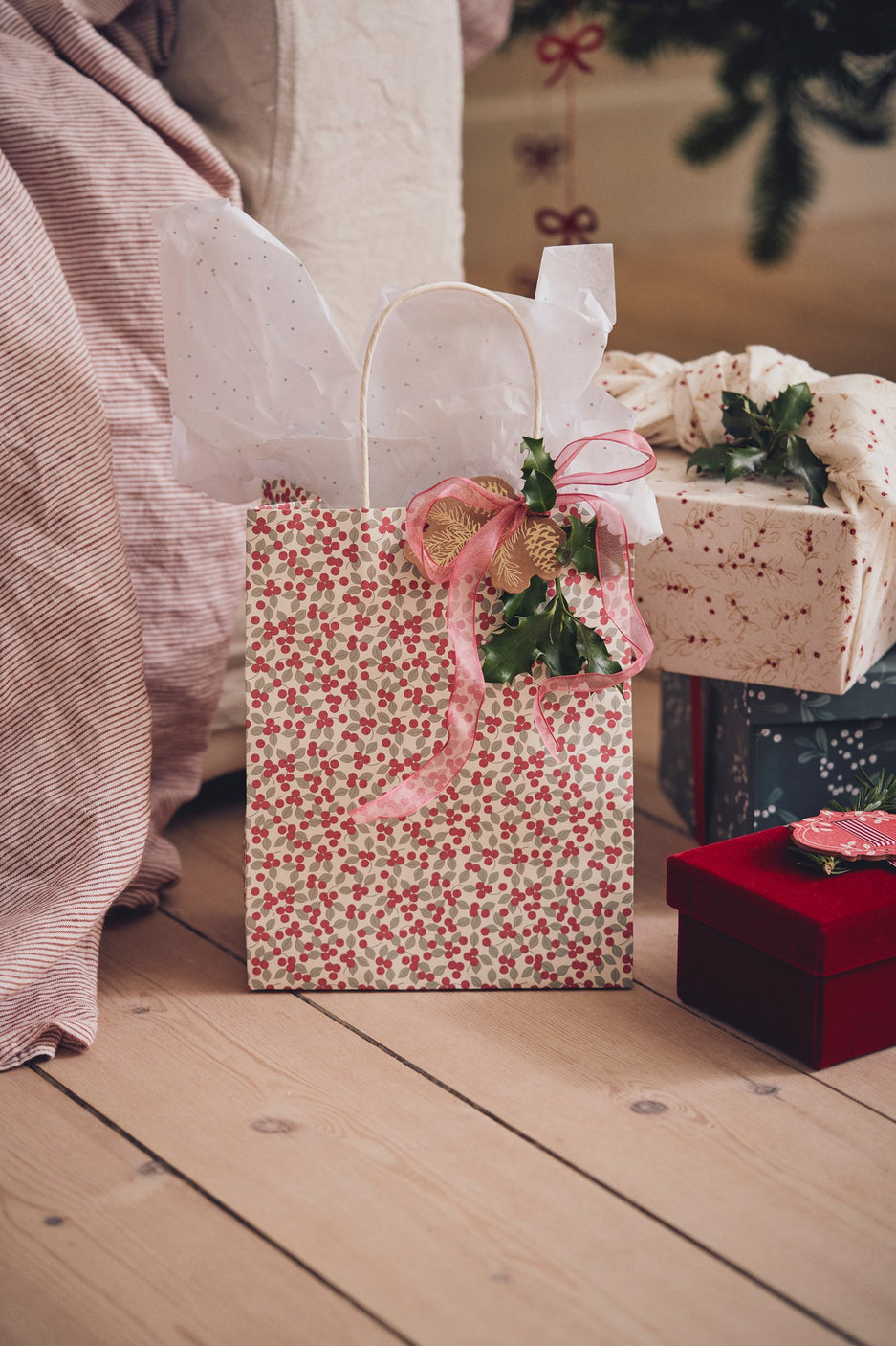 Anna retrieves the box of used gift bags and neatly folded wrapping paper from Christmases past. Clara brings warm tea and Christmas biscuits, and true to tradition, wrapping becomes a shared moment. "The greatest joy is giving," Anna smiles.