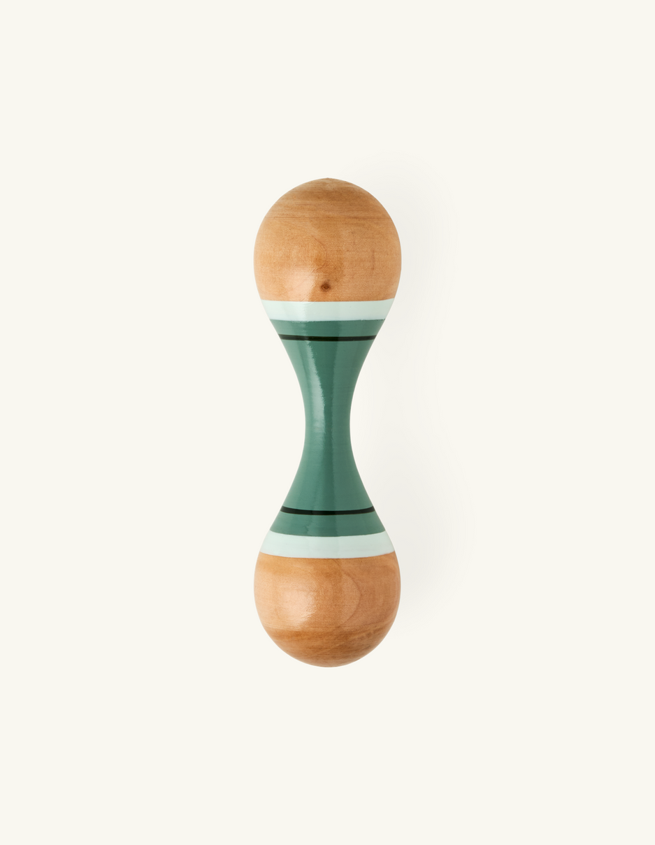 The sisters' toy maracas are made of FSC®-certified schima superba and measure 14 x 4.5 cm.